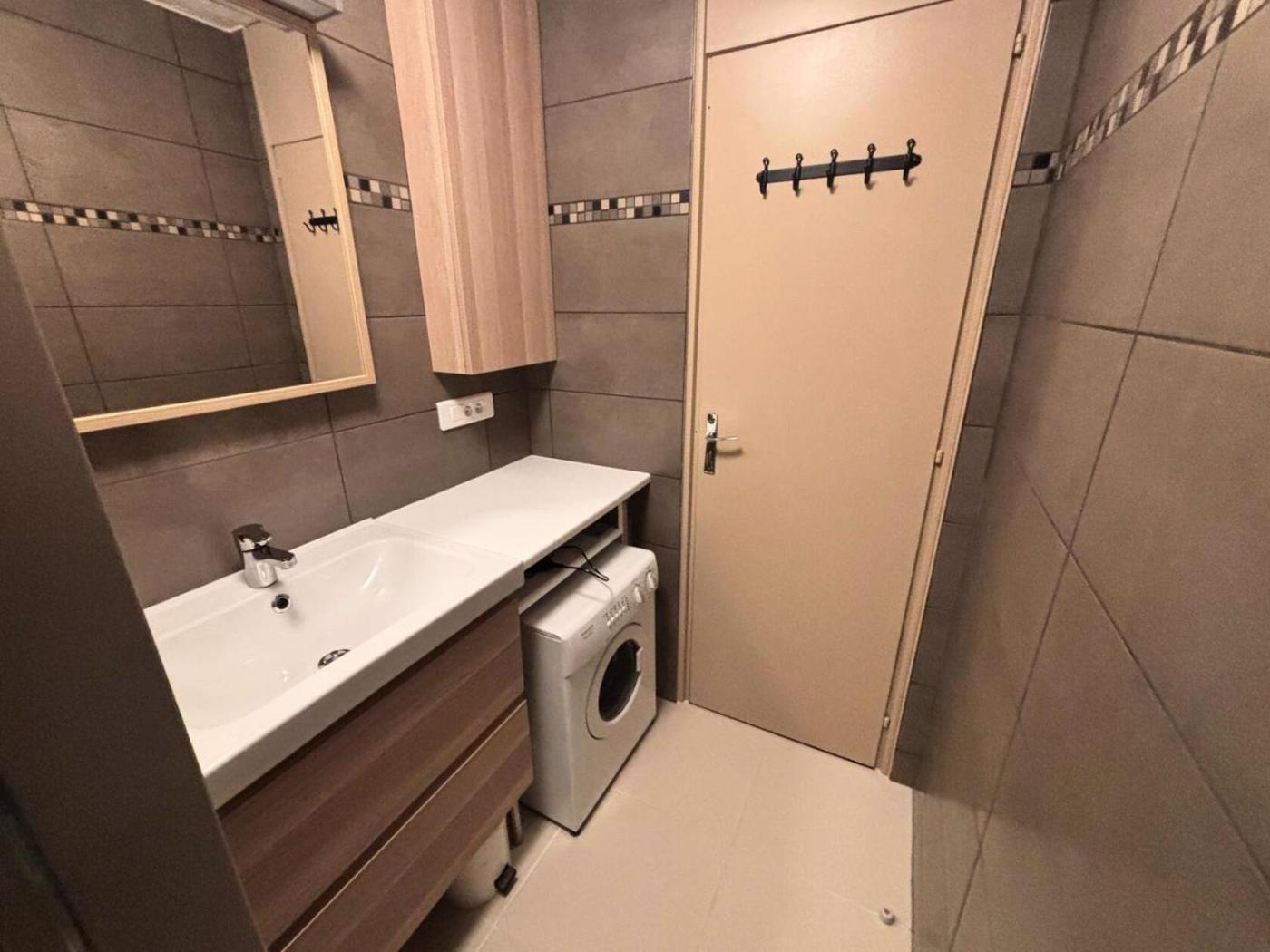 Cet appartement comporte 2 chambres, 1 salle de bains avec un sèche-cheveux, un salon, ainsi quune cuisine avec un réfrigérateur.