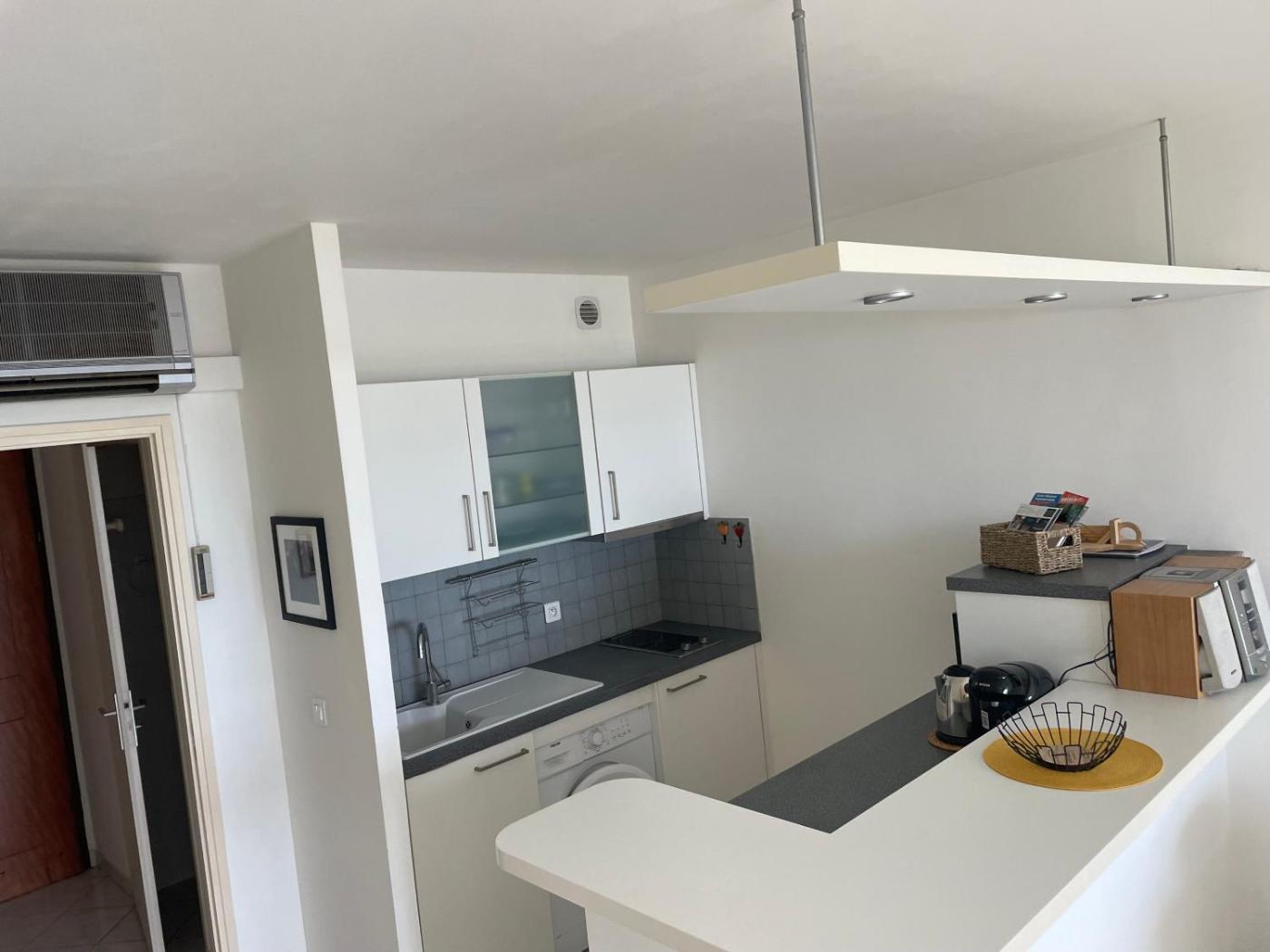 Appartement 1 Chambre. In the well-fitted kitchen, guests will find a stovetop, a refrigerator, kitchenware and a microwave. The air-conditioned apartment offers a flat-screen TV with cable channels, a washing machine, a tea and coffee maker, a dining area as well as sea views. The unit has 1 bed.