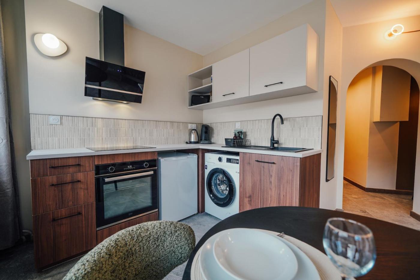 Appartement 1 Chambre. The apartments kitchen is available for cooking and storing food. This apartment has a washing machine, heating, a flat-screen TV and a balcony. The unit has 1 bed.