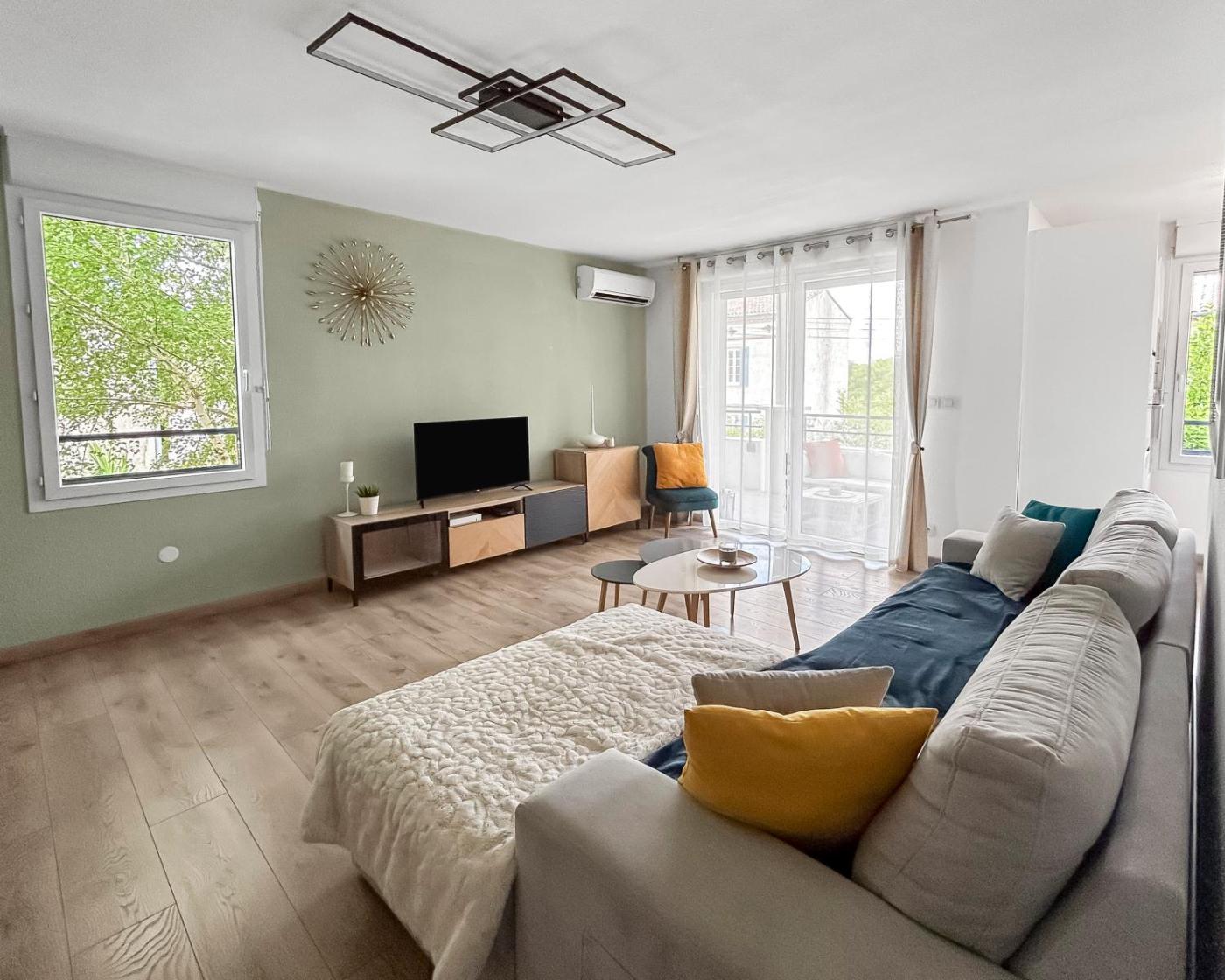 Appartement 2 Chambres. Featuring a private entrance, this air-conditioned apartment comprises 1 living room, 2 separate bedrooms and 1 bathroom with a shower and a hairdryer. Meals can be prepared in the well-fitted kitchen, which comes with a stovetop, a refrigerator, a dishwasher and kitchenware. The spacious apartment provides a washing machine, a coffee machine, a seating area, a dining area, as well as a flat-screen TV with cable channels. The unit offers 2 beds.