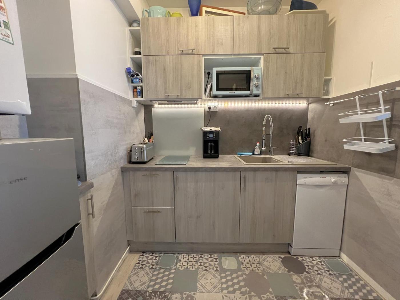 Cet appartement possède 1 chambre, une télévision, une cuisine équipée avec un réfrigérateur et un lave-vaisselle, un lave-linge, ainsi que 1 salle de bains avec une baignoire.