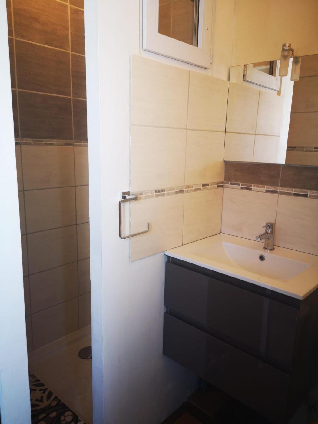 Chambre Double avec Salle de Bains Privative. The double room provides a wardrobe and parquet floors, as well as a private bathroom boasting a shower. Meals can be prepared in the well-fitted kitchen, which features a refrigerator, kitchenware and a microwave. The double room features a flat-screen TV, a private entrance, a tea and coffee maker, a dining area as well as city views. The unit has 1 bed. ;