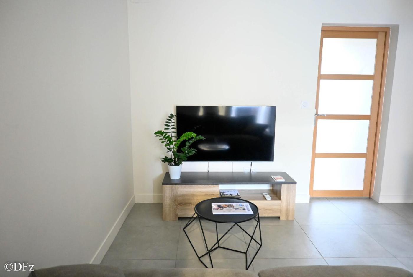 Appartement 1 Chambre. Boasting a private entrance, this air-conditioned apartment features 1 living room, 1 separate bedroom and 1 bathroom with a shower and a hairdryer. The well-equipped kitchen has a stovetop, a refrigerator, kitchenware and an oven. Featuring a terrace with garden views, this apartment also features a washing machine and a flat-screen TV. The unit has 2 beds.