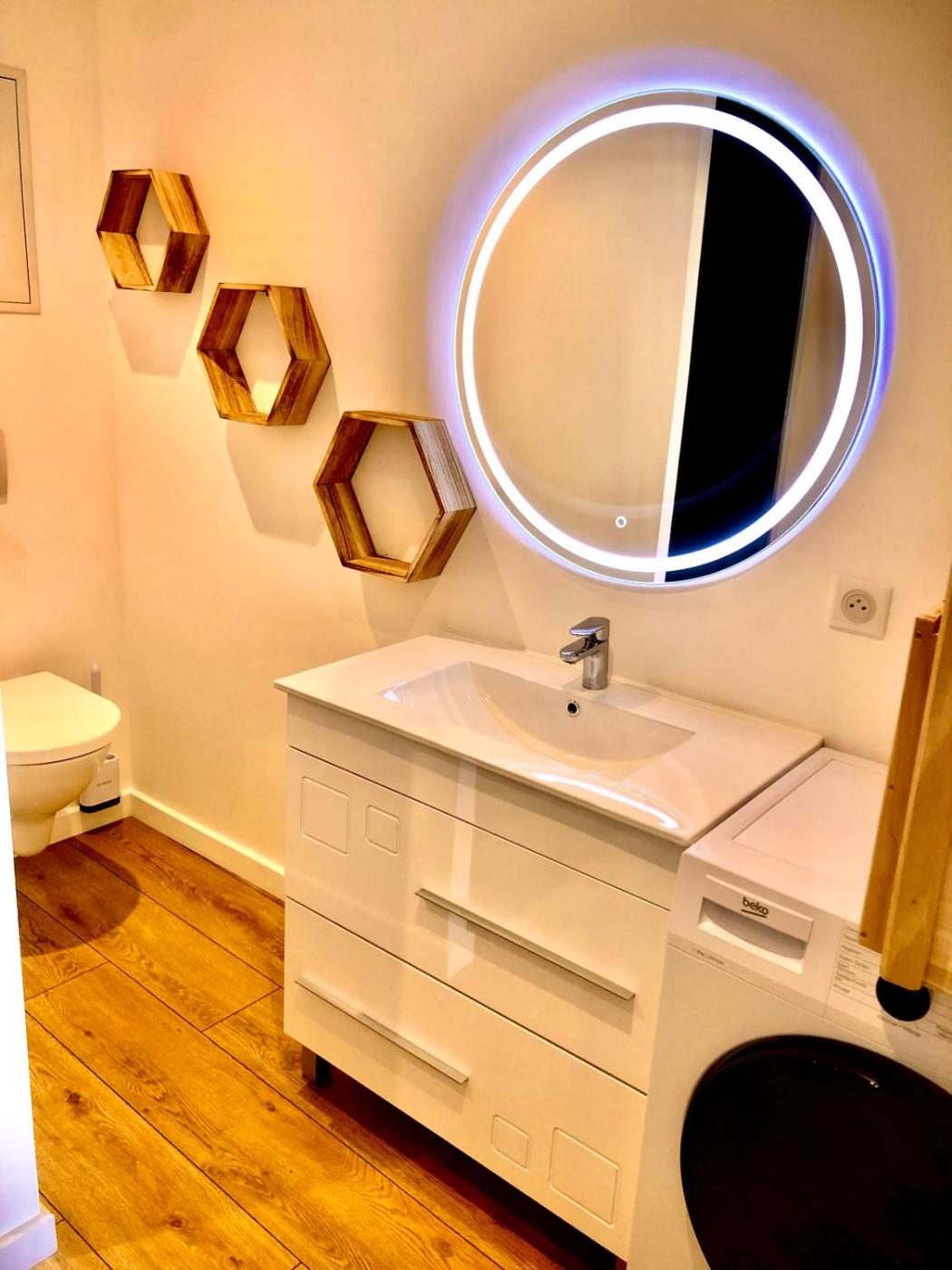Appartement 1 Chambre. This apartment is comprised of 1 living room, 1 separate bedroom and 1 bathroom with a shower and a hairdryer. The apartments kitchen is available for cooking and storing food. This apartment features a washing machine, soundproof walls, a flat-screen TV and a balcony. The unit offers 1 bed.
