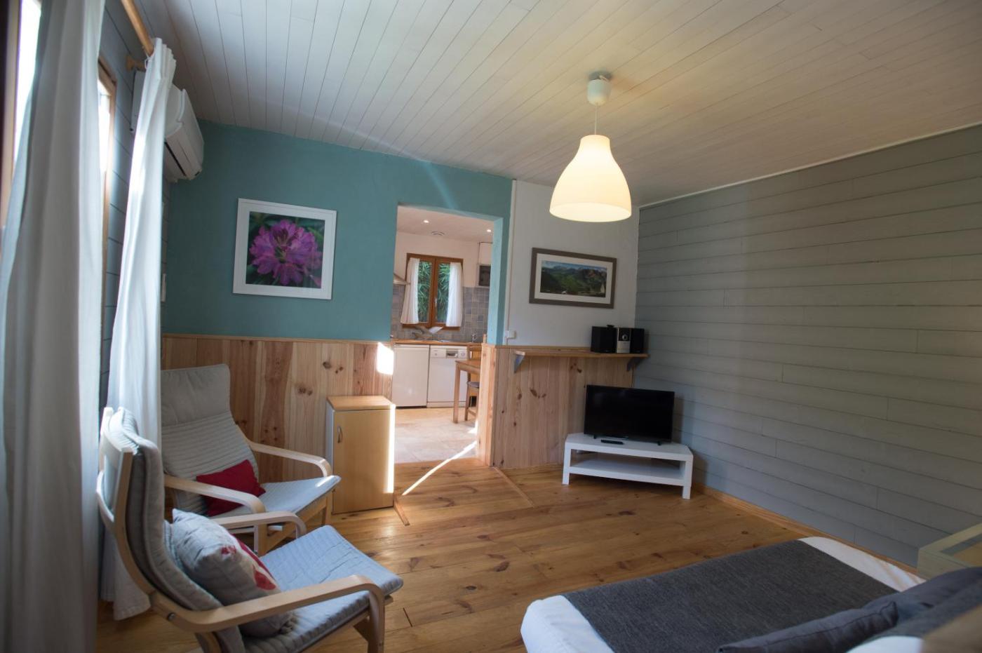 Appartement - Vue sur Jardin. Boasting a private entrance, this air-conditioned apartment comes with 1 living room, 1 separate bedroom and 1 bathroom with a walk-in shower and a hairdryer. Guests can make meals in the kitchen that features a stovetop, a refrigerator, a dishwasher and kitchenware. The apartment features a flat-screen TV with satellite channels, a washing machine, a tea and coffee maker, a seating area as well as garden views. The unit has 2 beds. ;