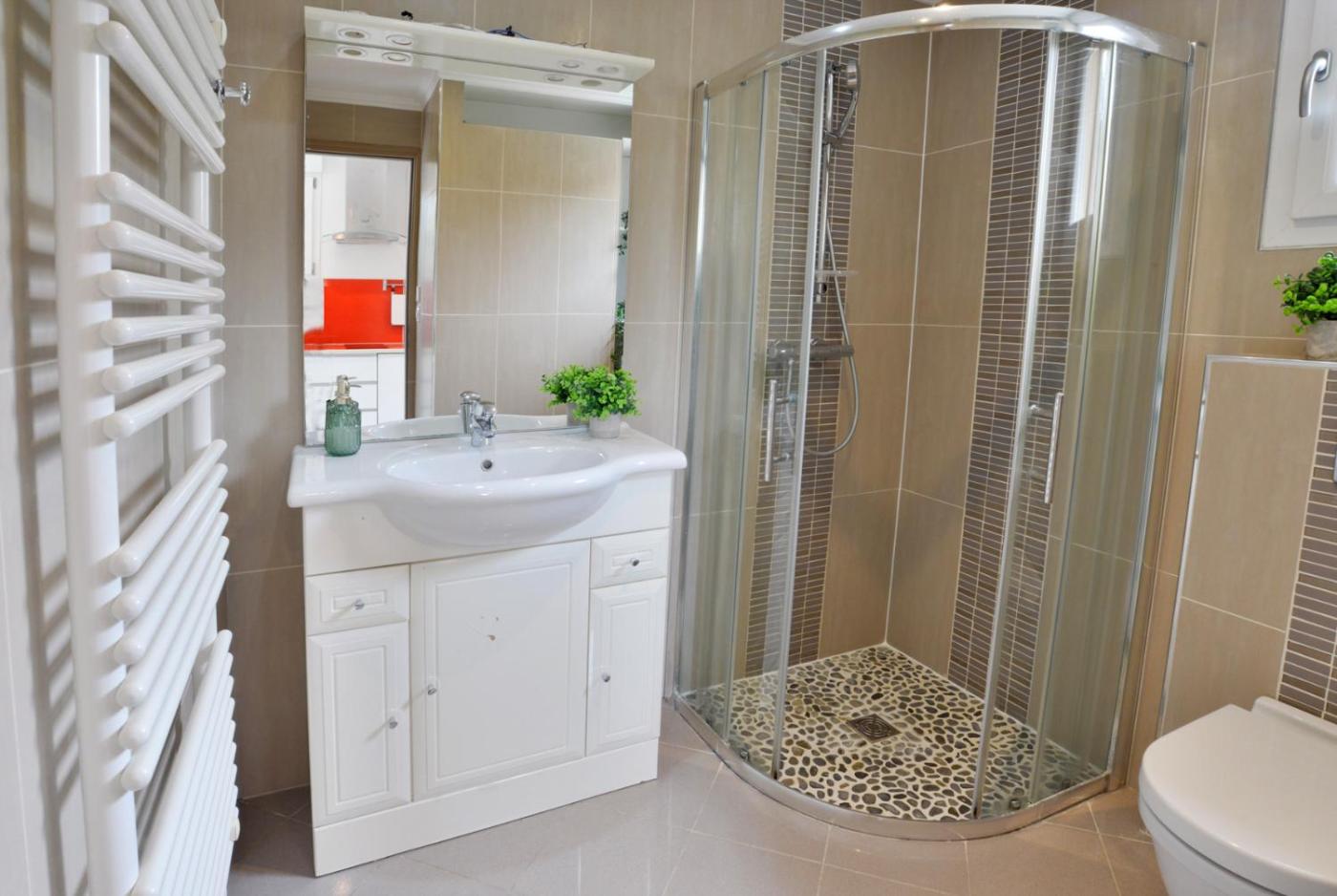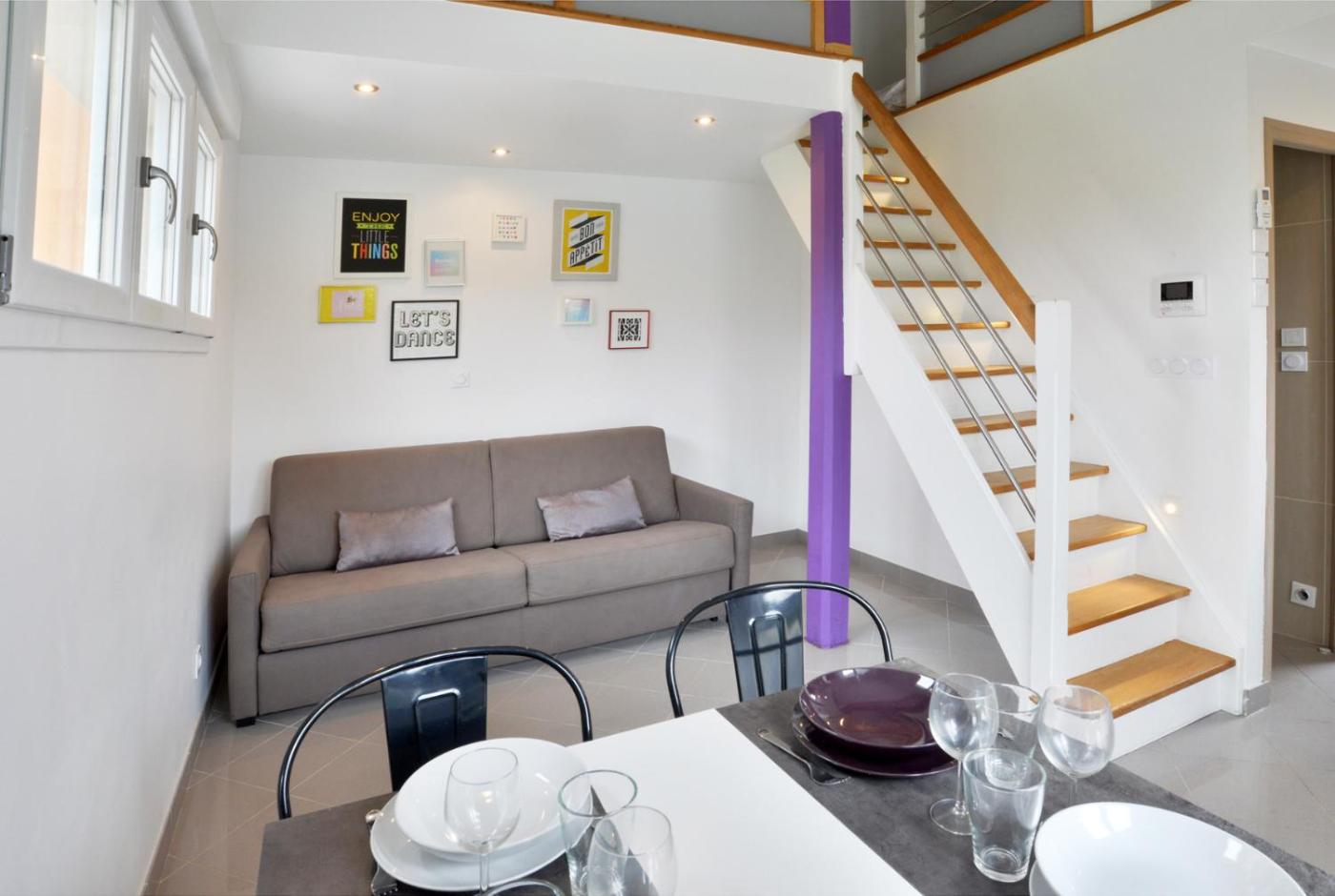 Studio avec mezzanine. Guests can make meals in the kitchen that is fitted with a stovetop, a refrigerator, a dishwasher and kitchenware. The studio offers air conditioning, a private entrance, a terrace with garden views as well as a private bathroom boasting a shower. The unit has 2 beds.