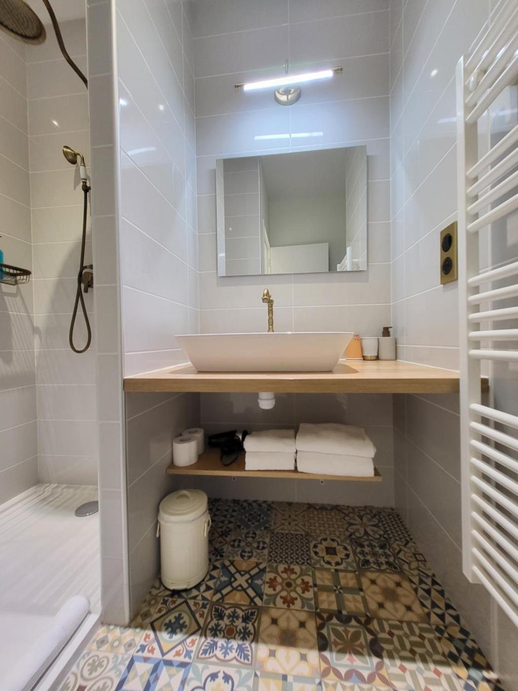 Chambre Double. Providing free toiletries, this double room includes a private bathroom with a shower and a hairdryer. Featuring an outdoor dining area, this double room also provides a coffee machine, a wardrobe and a flat-screen TV. The unit offers 1 bed. ;