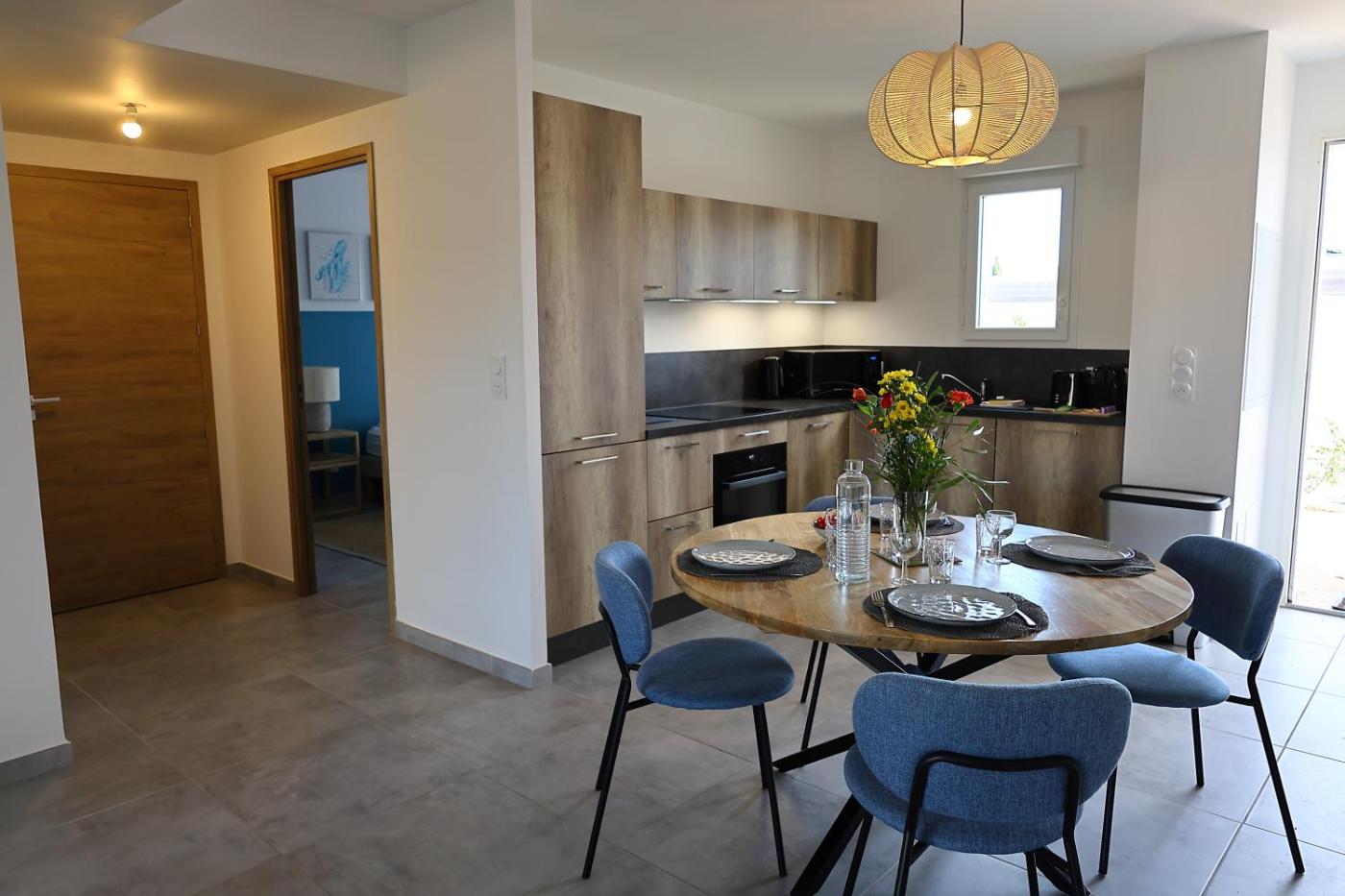 Villa 2 Chambres. Featuring a private entrance, this air-conditioned villa comprises 1 living room, 2 separate bedrooms and 1 bathroom with a walk-in shower and a hairdryer. Guests will find a stovetop, a refrigerator, a dishwasher and kitchenware in the well-fitted kitchen. The villa also provides guests with a barbecue. Boasting a terrace with garden views, this villa also provides a washing machine and a flat-screen TV. The unit offers 3 beds.
