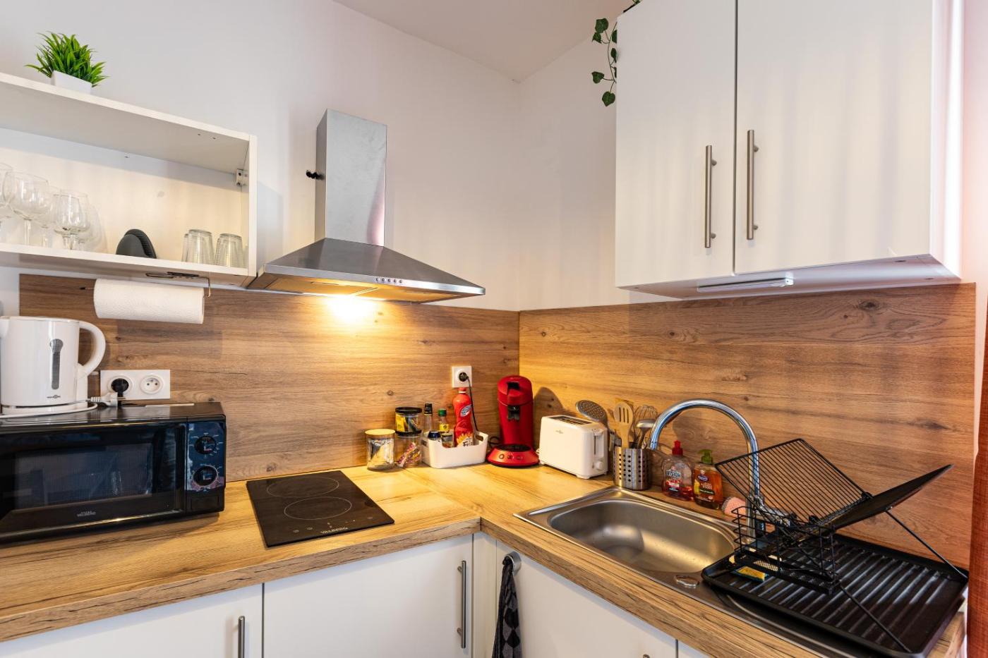 Appartement 2 Chambres. This air-conditioned apartment is comprised of 1 living room, 2 separate bedrooms and 1 bathroom with a shower. The well-equipped kitchen features a stovetop, a refrigerator, kitchenware and a microwave. The apartment has parquet floors, a seating area with a flat-screen TV, a coffee machine, a wardrobe, as well as a dressing room. The unit offers 3 beds.
