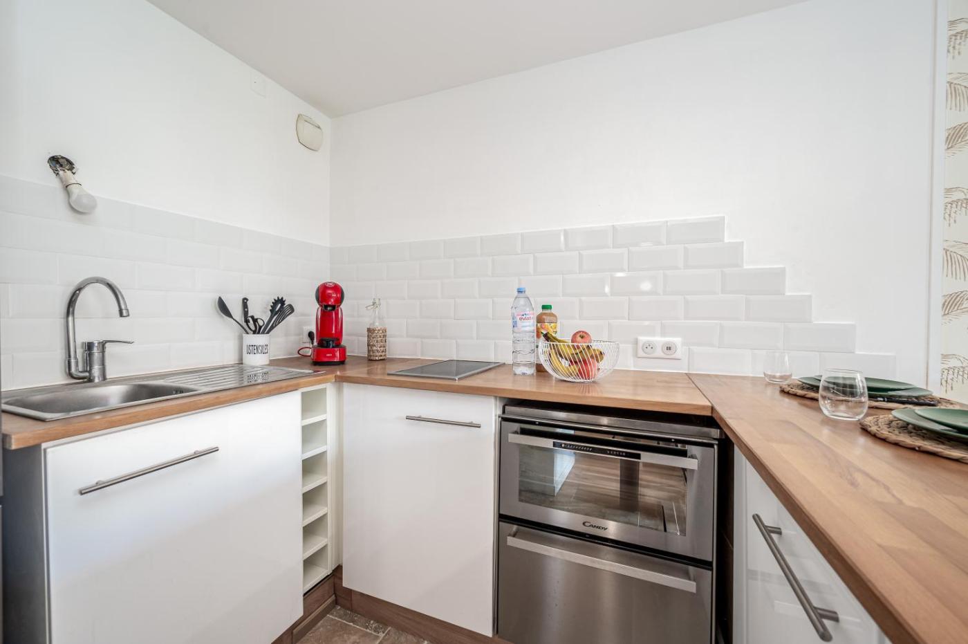 Appartement 1 Chambre. The private pool is the special feature of this apartment. This air-conditioned apartment comprises 1 living room, 1 separate bedroom and 1 bathroom with a shower. In the kitchen, guests will find a stovetop, a refrigerator, a dishwasher and kitchenware. The apartment provides a washing machine, a coffee machine, a seating area, a dining area and a flat-screen TV. The unit offers 2 beds.