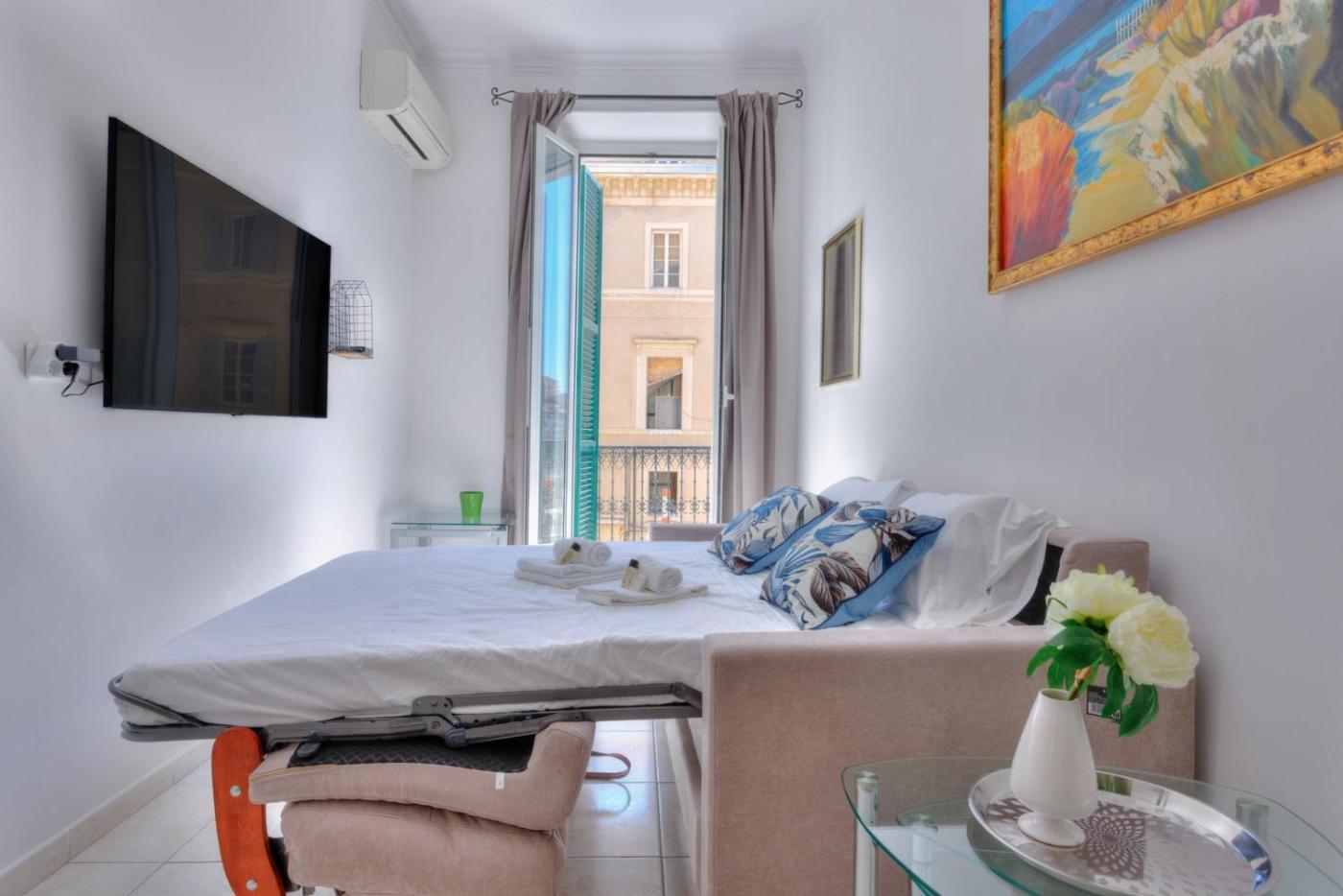 Appartement 1 Chambre. This air-conditioned apartment is comprised of 1 living room, 1 separate bedroom and 1 bathroom with a shower. The well-equipped kitchen features a stovetop, a refrigerator, a dishwasher and kitchenware. Featuring a balcony with city views, this apartment also offers a coffee machine and a flat-screen TV. The unit offers 2 beds.