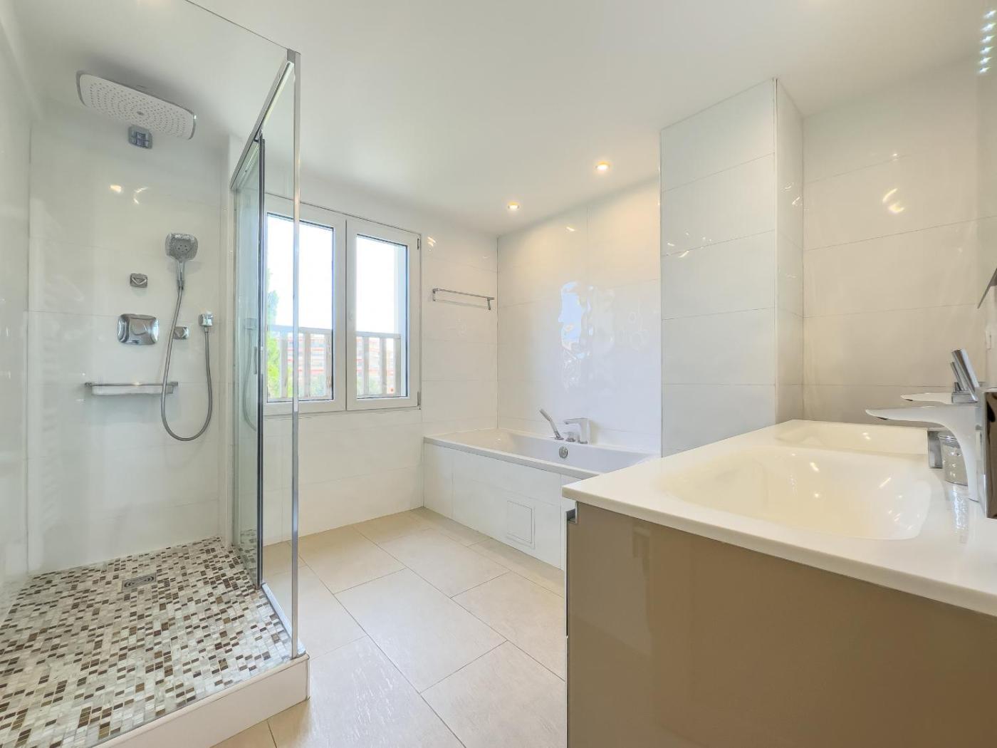 Cet appartement avec climatisation se compose de 2 chambres, dun salon, dune cuisine entièrement équipée avec un réfrigérateur et une machine à café, ainsi que de 3 salles de bains avec une douche et une baignoire. Des serviettes et du linge de lit sont disponibles.