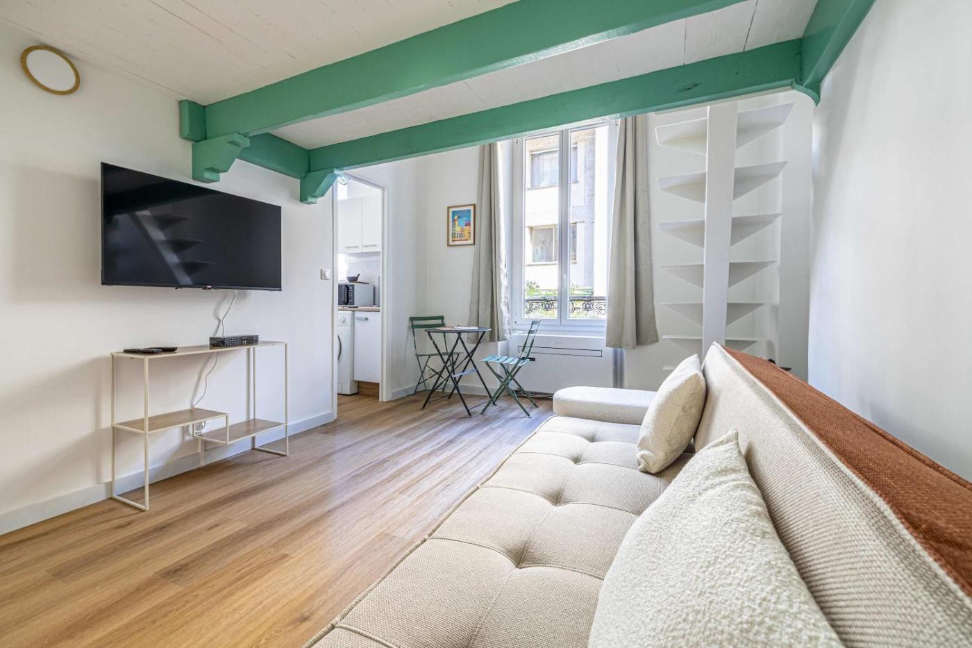 Studio Duplex. The studio features a private bathroom, air conditioning, a washing machine, as well as a seating area with a flat-screen TV. The well-equipped kitchen has a stovetop, a refrigerator, kitchenware and a microwave. The studio provides a TV, a tea and coffee maker, a dining area, a sofa as well as city views. The unit offers 1 bed.