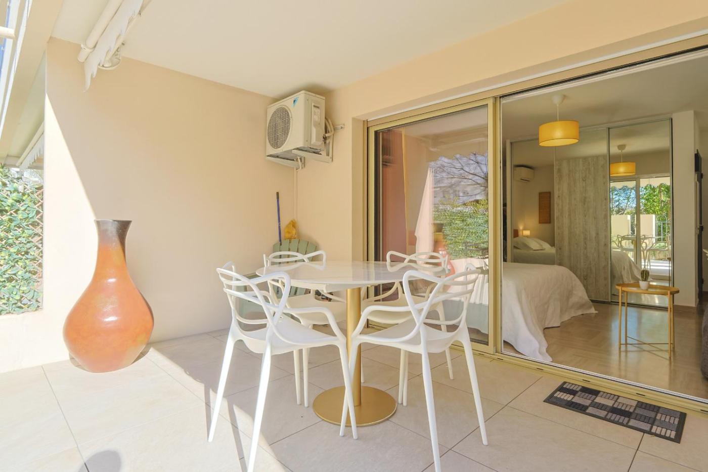 Studio avec Terrasse. Meals can be prepared in the well-fitted kitchen, which has a refrigerator, kitchenware and a microwave. This air-conditioned studio has a private bathroom, a washing machine, a tea and coffee maker as well as a terrace.