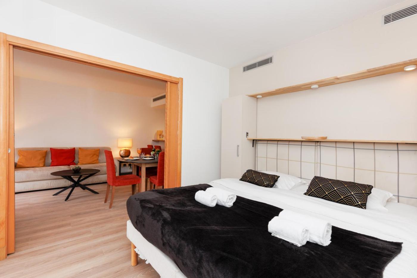 Appartement 1 Chambre. This air-conditioned apartment features 1 bedroom, 1 bathroom and a living room with seating and dining areas. In the fully equipped kitchen, guests will find a stovetop, a refrigerator, a dishwasher and kitchenware. Featuring a terrace, this apartment also provides a washing machine, an electric kettle and a flat-screen TV. The unit offers 2 beds.