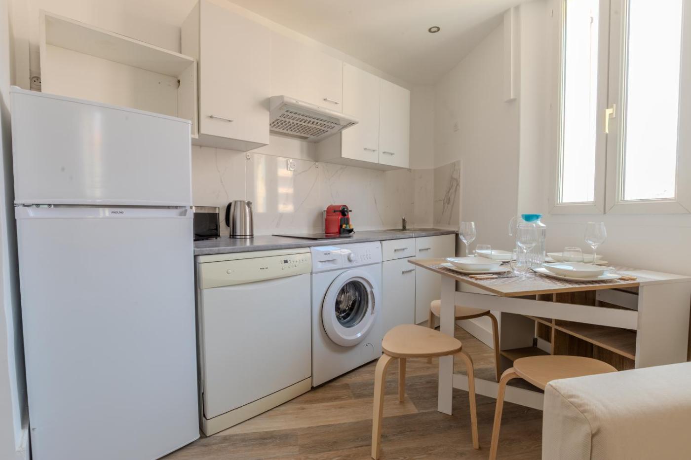 Appartement 1 Chambre. This air-conditioned apartment comprises 1 living room, 1 separate bedroom and 1 bathroom with a shower. In the kitchen, guests will find a stovetop, a refrigerator, a dishwasher and kitchenware. The apartment provides a washing machine, a coffee machine, a seating area, a flat-screen TV, as well as city views. The unit offers 2 beds.