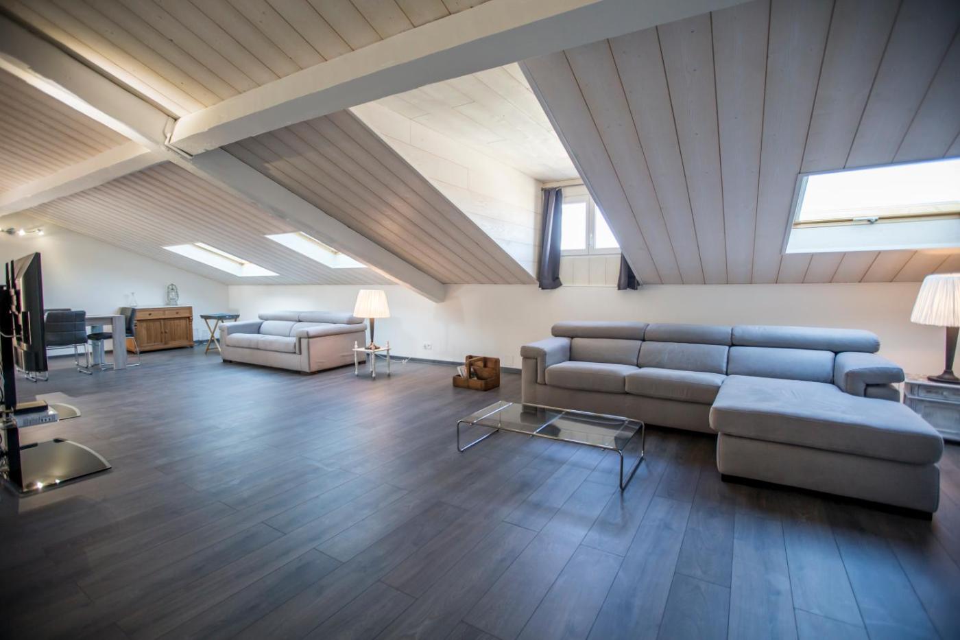 Loft. This spacious apartment features 1 living room, 1 separate bedroom and 1 bathroom with a hairdryer. The well-fitted kitchen features a refrigerator, a dishwasher, kitchenware and an oven. This apartment is air-conditioned and has a seating area with a flat-screen TV, a washing machine, soundproof walls, a coffee machine, as well as a dining area. The unit has 2 beds.