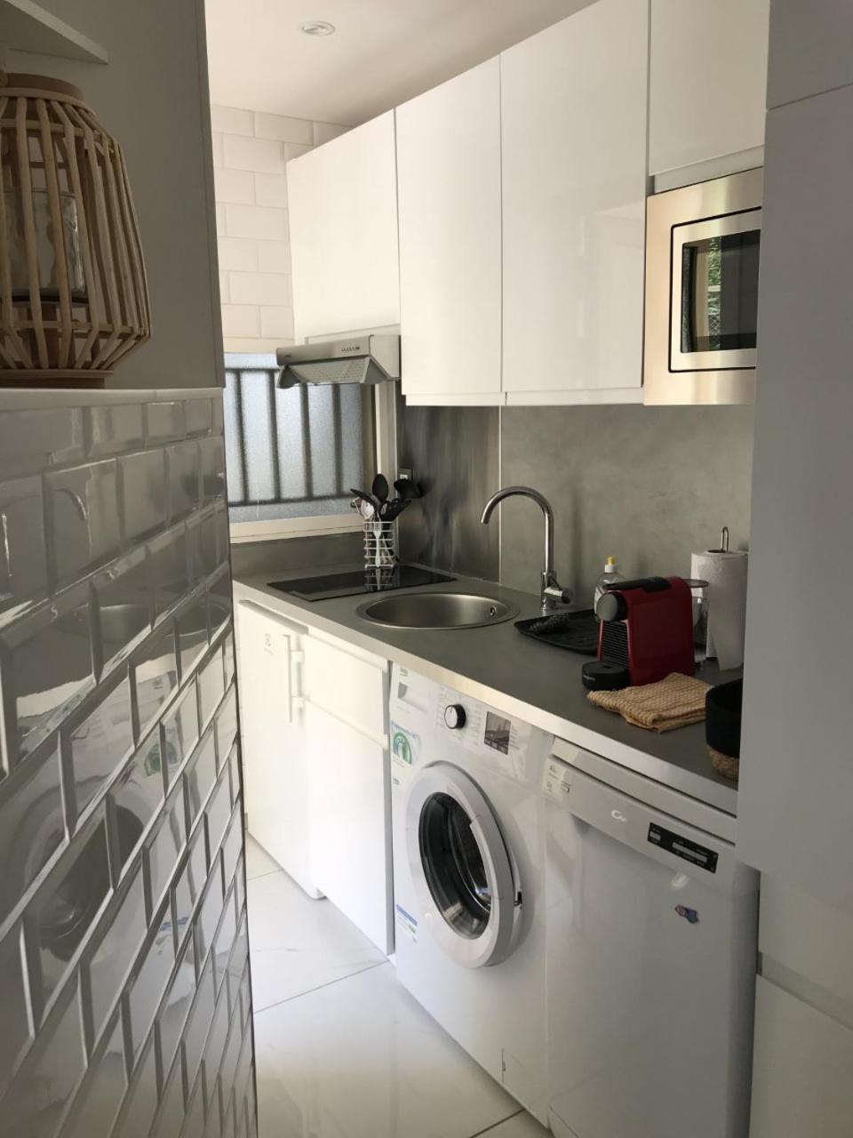 Studio. The well-fitted kitchen features a stovetop, a refrigerator, a dishwasher and kitchenware. The studio offers air conditioning, a washing machine, a terrace with ancourtyard view as well as a private bathroom featuring a walk-in shower. The unit offers 1 bed.