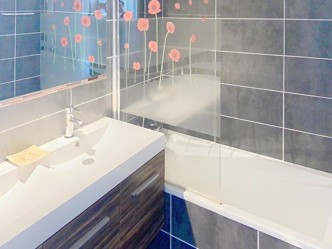 Appartement 1 Chambre avec Balcon. This apartment comes with 1 living room, 1 separate bedroom and 2 bathrooms with a bath and a hairdryer. Meals can be prepared in the well-fitted kitchen, which features a refrigerator, a dishwasher, kitchenware and an oven. This apartment has a washing machine, a tea and coffee maker, a TV and a terrace. The unit has 2 beds.