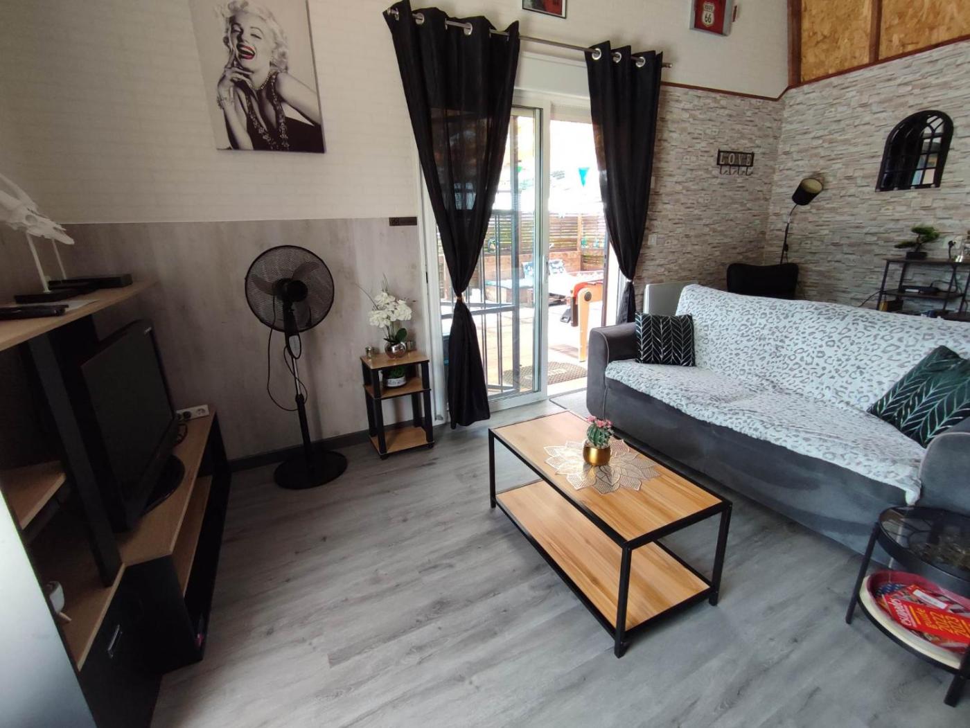 Maison 1 Chambre. This holiday home features a hot tub. Boasting a private entrance, this holiday home features 1 living room, 1 separate bedroom and 1 bathroom with a bath and a shower. Guests will find a stovetop, a refrigerator, a dishwasher and kitchenware in the fully equipped kitchen. The holiday home also comes with a barbecue. Featuring a terrace with garden views, this holiday home also features soundproof walls and a flat-screen TV. The unit has 2 beds.