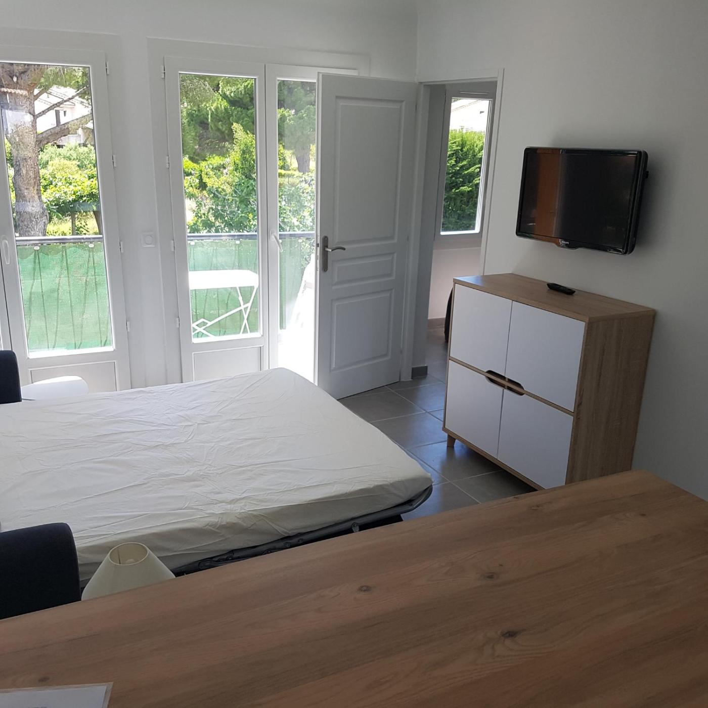 Appartement 1 Chambre. Featuring a private entrance, this apartment consists of 1 living room, 1 separate bedroom and 1 bathroom with a shower. Guests will find a stovetop, a refrigerator, kitchenware and an oven in the well-fitted kitchen. The apartment also offers a barbecue. Boasting a terrace with garden views, this apartment also provides a washing machine and a flat-screen TV. The unit offers 3 beds.