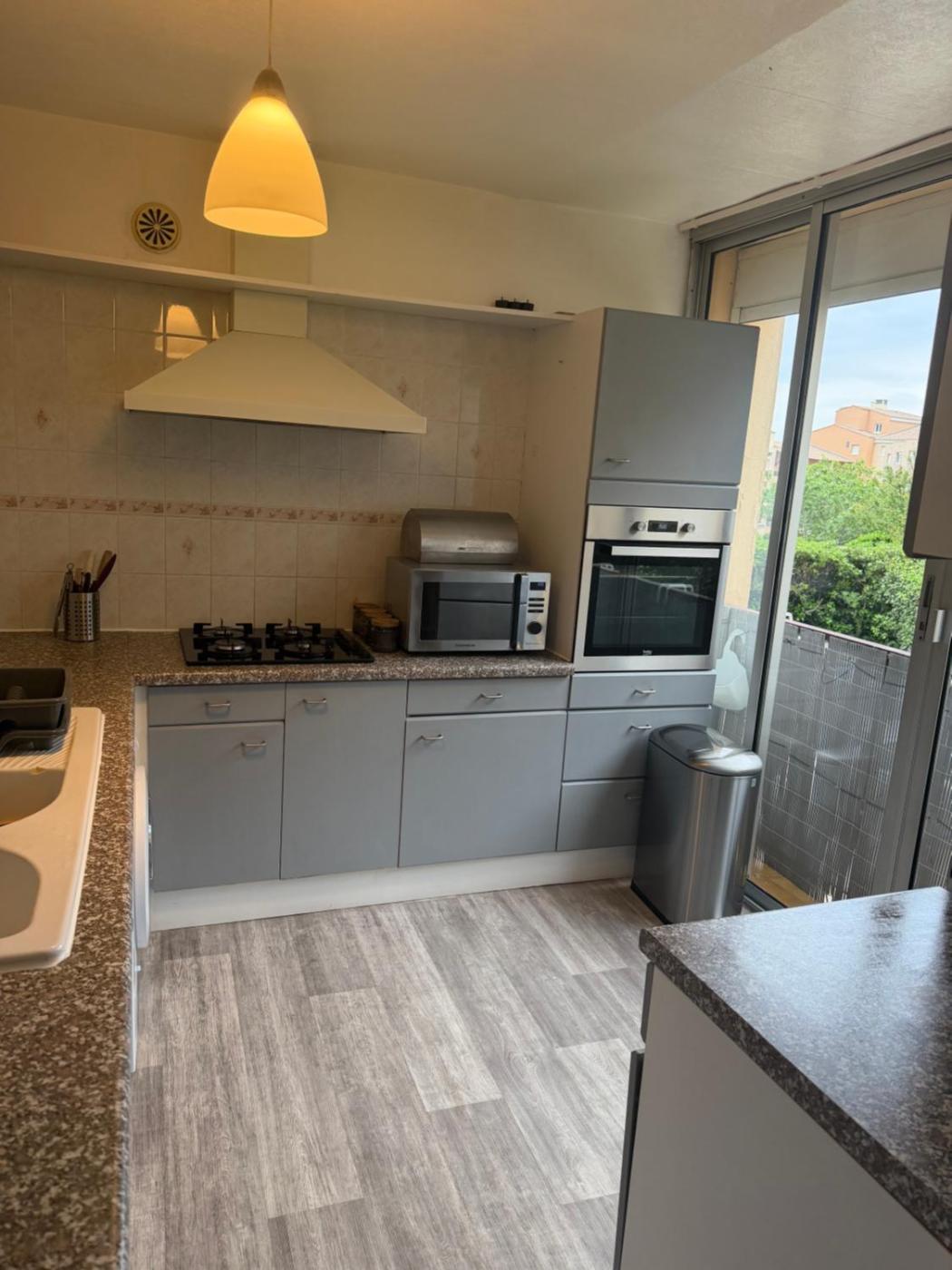 Cet appartement comprend un balcon, 1 chambre, un salon et une cuisine bien équipée.