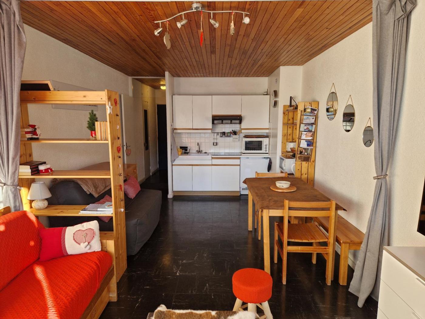 Studio - Vue sur Montagne. Meals can be prepared in the kitchen, which comes with a stovetop, a refrigerator, kitchenware and an oven. The studio provides a washing machine, soundproof walls, a balcony with mountain views as well as a private bathroom featuring a bath or a shower. The unit offers 3 beds.
