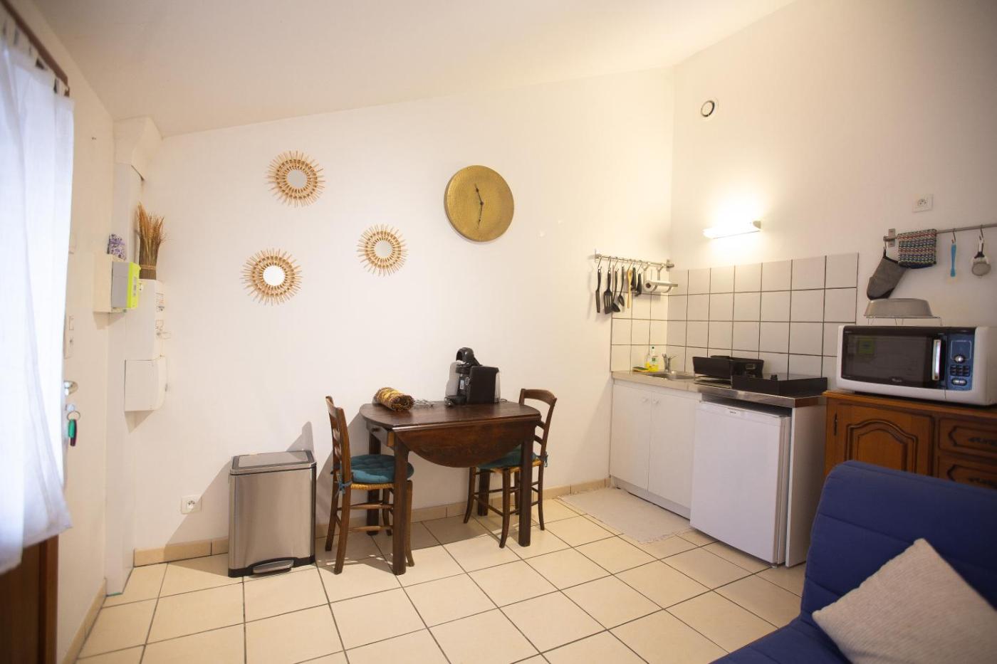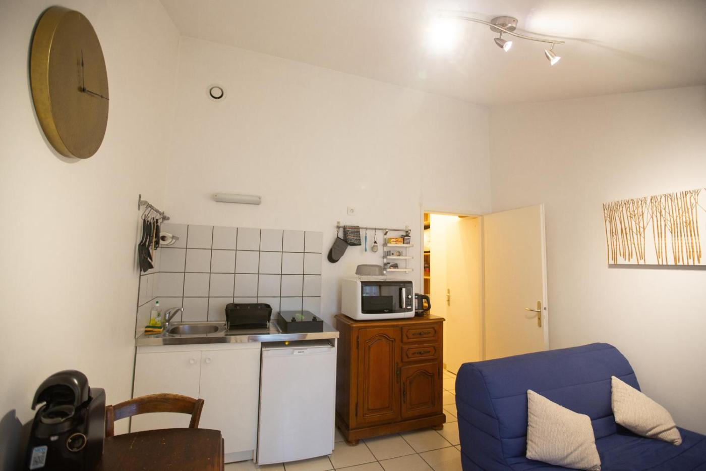 Appartement 1 Chambre. Boasting a private entrance, this apartment comes with 1 living room, 1 separate bedroom and 1 bathroom with a bath or a shower and a hairdryer. Guests can make meals in the kitchen that features a stovetop, a refrigerator, an oven and a microwave. Featuring a terrace with garden views, this apartment also features a tea and coffee maker and a flat-screen TV. The unit has 2 beds.