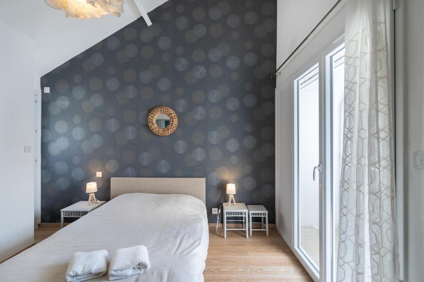 Appartement 2 Chambres. This apartment provides a fireplace. This spacious apartment comprises 1 living room, 2 separate bedrooms and 1 bathroom with a shower and a hairdryer. Guests will find a stovetop, a refrigerator, a dishwasher and kitchenware in the fully equipped kitchen. The apartment also provides guests with a barbecue. This apartment features a washing machine, a coffee machine, a TV and a terrace. The unit offers 3 beds.