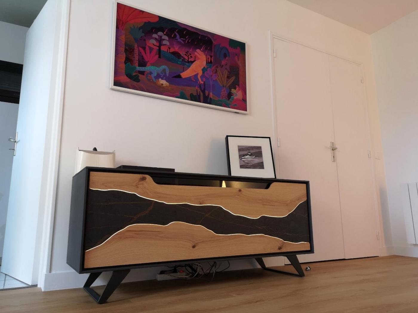 Appartement 1 Chambre. This apartment comes with 1 living room, 1 separate bedroom and 1 bathroom with a bath and a shower. Guests can make meals in the kitchen that features a stovetop, a refrigerator, a dishwasher and kitchenware. The apartment features a flat-screen TV, a washing machine, a coffee machine, heating as well as city views. The unit has 2 beds.