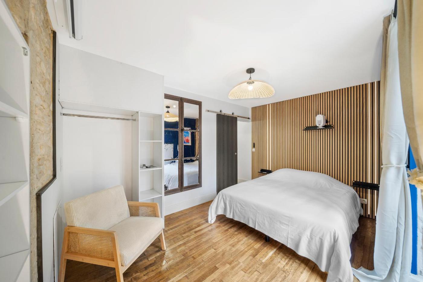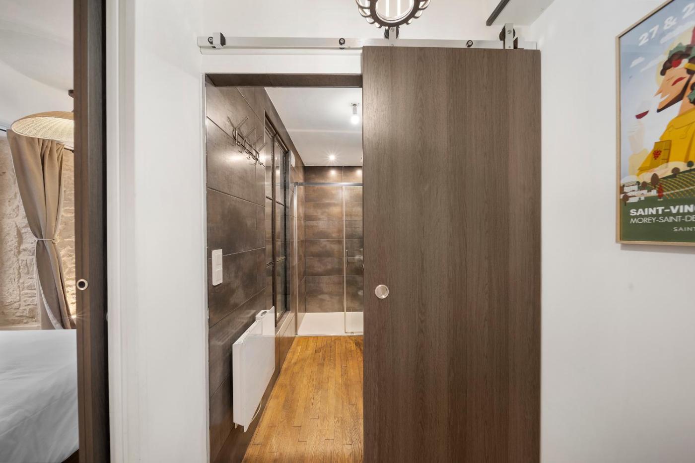 Appartement 1 Chambre Deluxe. Featuring a private entrance, this apartment comprises 1 living room, 1 separate bedroom and 1 bathroom with a walk-in shower and a hairdryer. In the well-fitted kitchen, guests will find a stovetop, a refrigerator, a dishwasher and kitchenware. This apartment features soundproof walls, flat-screen TV with streaming services, ancourtyard view, as well as winechampagne for guests. The unit offers 1 bed.