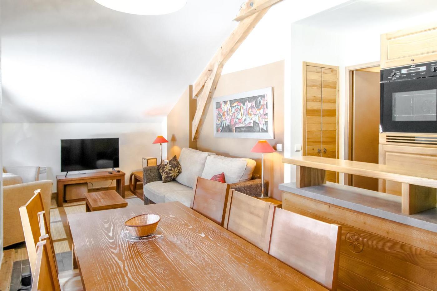 Appartement 2 Chambres. The fireplace is the standout feature of this apartment. This apartment includes 1 living room, 2 separate bedrooms and 2 bathrooms with a bath and a shower. The well-equipped kitchen has a refrigerator, a dishwasher, kitchenware and an oven. Boasting a balcony with mountain views, this apartment also offers a tea and coffee maker and a TV. The unit has 3 beds.