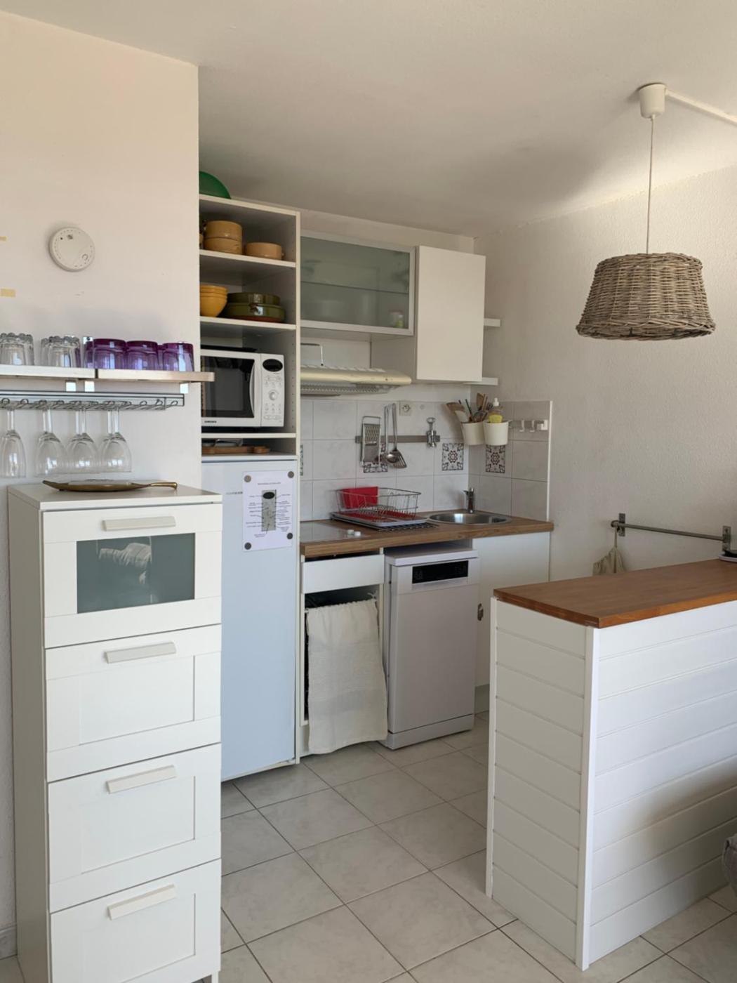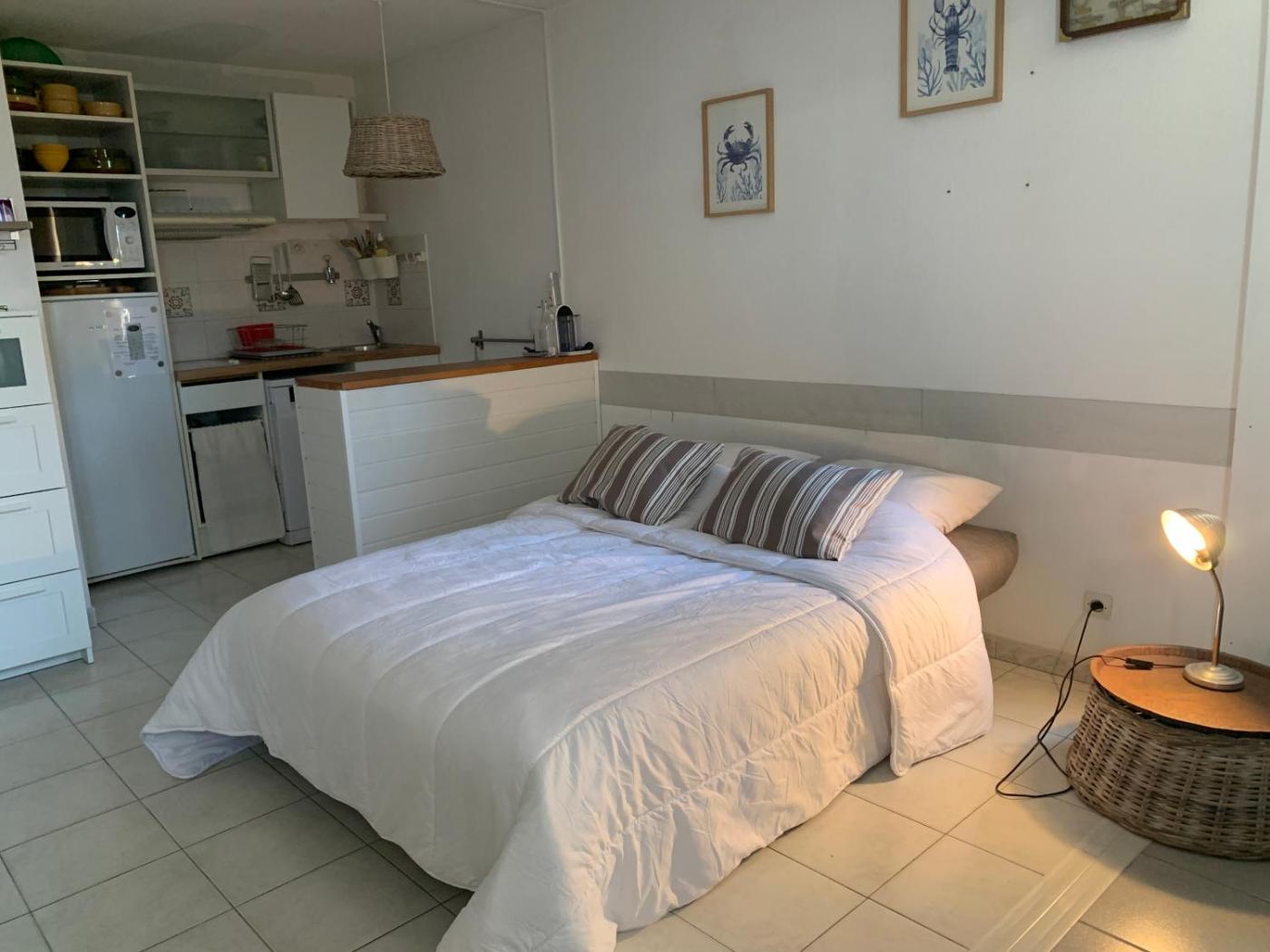 Appartement 1 Chambre. The air-conditioned apartment features 1 bedroom, 1 bathroom, a kitchenette and a dining area. Guests can make meals in the kitchenette that comes with a stovetop, a refrigerator, kitchenware and a microwave. This apartment offers a tea and coffee maker, a flat-screen TV and sea views.