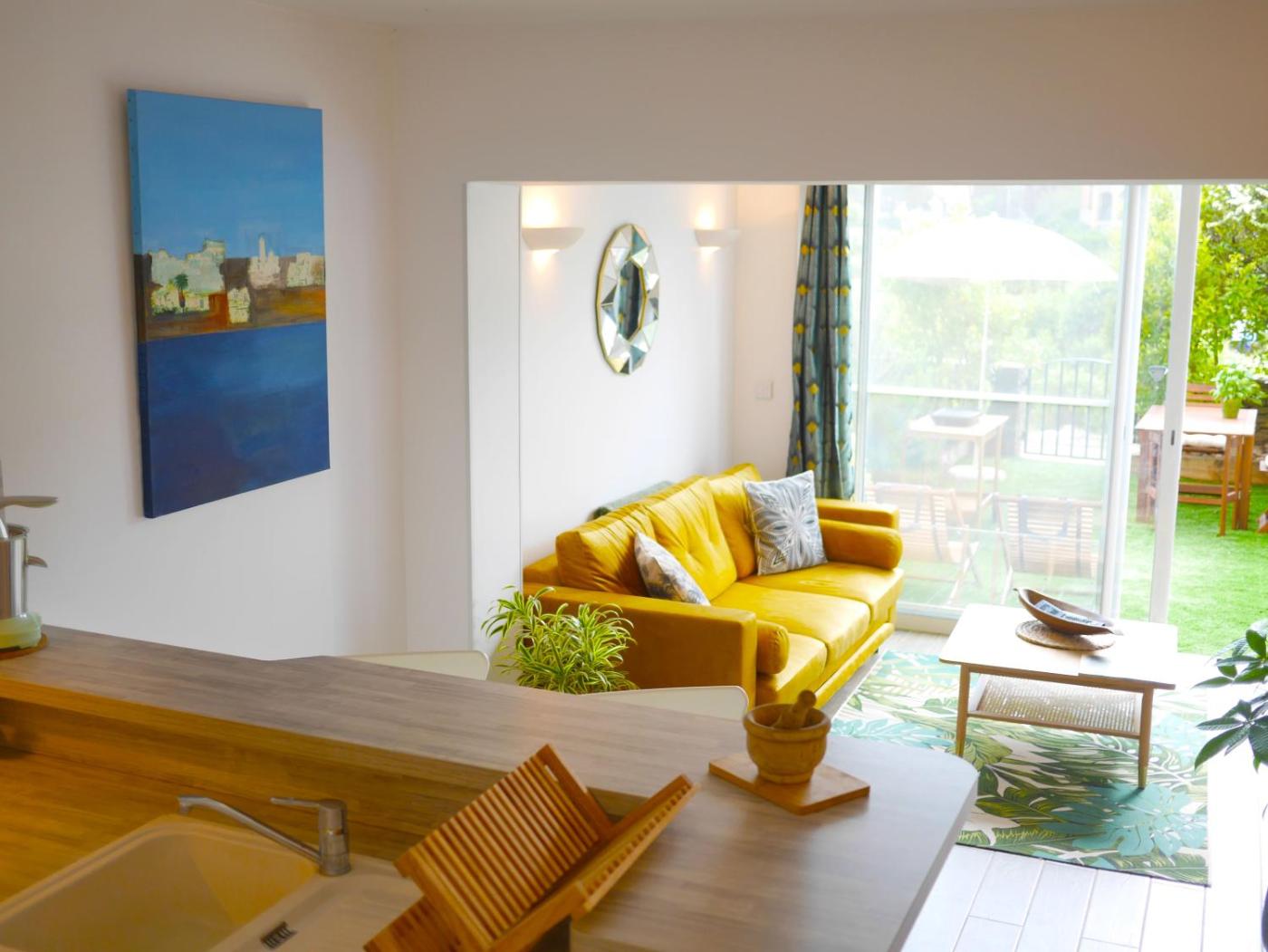 Appartement - Vue sur Jardin. This apartment features a private pool. This air-conditioned apartment features 1 living room, 1 separate bedroom and 1 bathroom with a bath. Guests can make meals in the kitchen that has a stovetop, a refrigerator, a dishwasher and kitchenware. The apartment features a flat-screen TV with cable channels, a washing machine, a tea and coffee maker, a seating area as well as garden views. The unit has 1 bed.