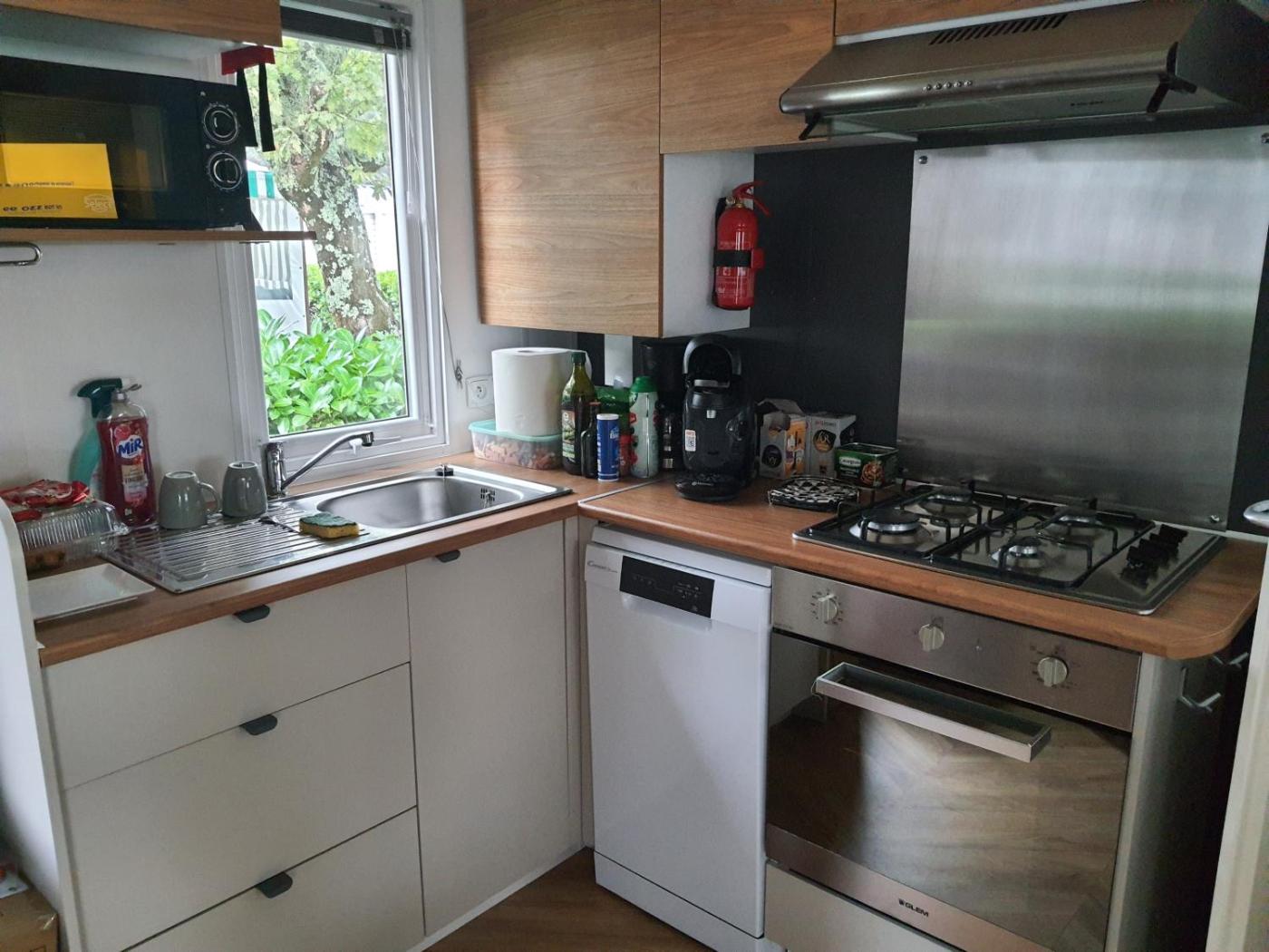 Mobile Home. Boasting a private entrance, this air-conditioned mobile home comes with 1 living room, 2 separate bedrooms and 1 bathroom with a shower and a hairdryer. Guests will find a stovetop, a refrigerator, a dishwasher and kitchenware in the well-equipped kitchenette. The mobile home also includes a barbecue. Featuring a terrace with garden views, this mobile home also features a washing machine and a TV. The unit has 4 beds.