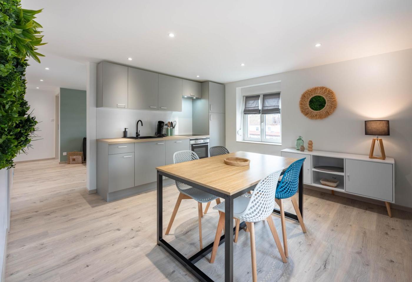 Appartement 2 Chambres. This apartment is comprised of 1 living room, 2 separate bedrooms and 1 bathroom with a walk-in shower and a hairdryer. In the well-equipped kitchen, guests will find a stovetop, a refrigerator, a dishwasher and kitchenware. The apartment offers a tea and coffee maker, a dining area, a high chair for children, a flat-screen TV, as well as city views. The unit offers 2 beds.