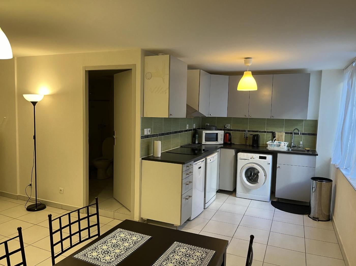 Cet appartement se compose de 1 chambre, dun salon, dune cuisine entièrement équipée avec un réfrigérateur et une machine à café, ainsi que de 1 salle de bains avec une douche et des articles de toilette gratuits. Des serviettes et du linge de lit sont à votre disposition.