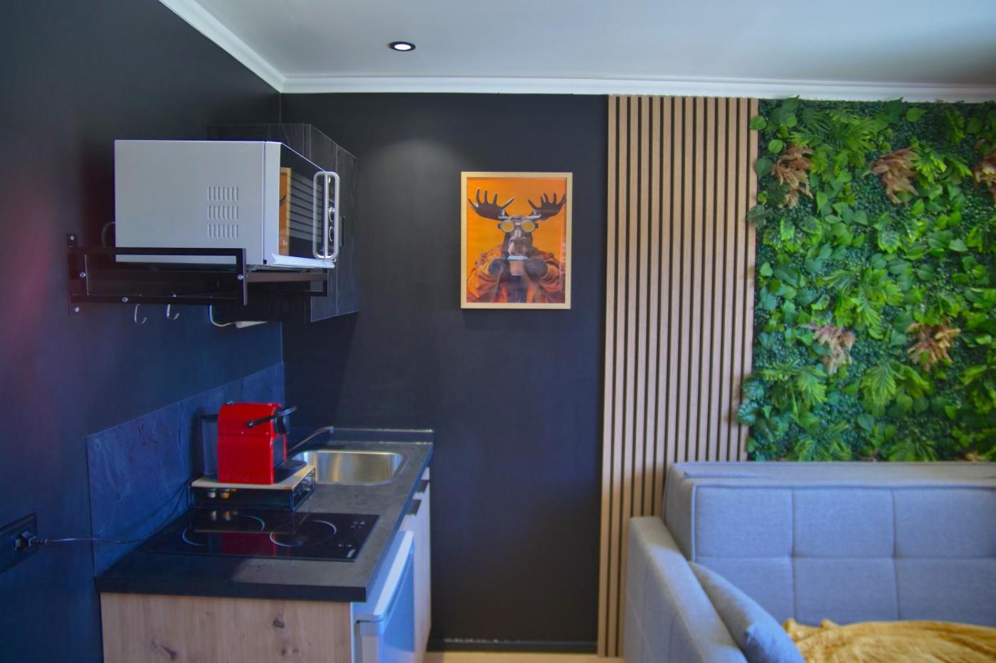 Cet appartement possède 1 chambre, un salon avec une télévision à écran plat, une kitchenette équipée, ainsi que 1 salle de bains avec une douche et un sèche-cheveux.