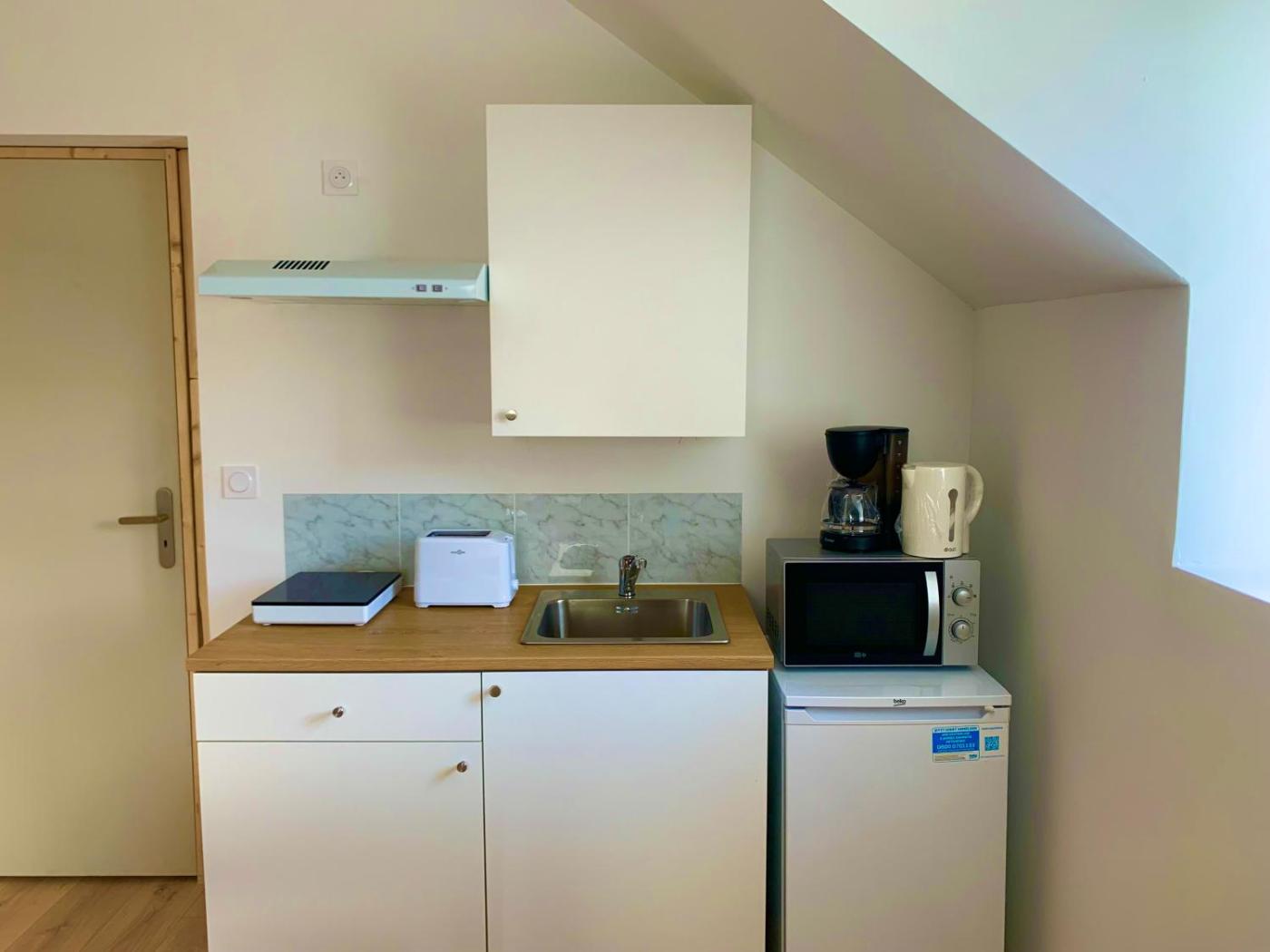 Appartement 1 Chambre. The apartments kitchenette is available for cooking and storing food. This apartment features a washing machine, a shared bathroom, heating and a flat-screen TV. The unit offers 1 bed.