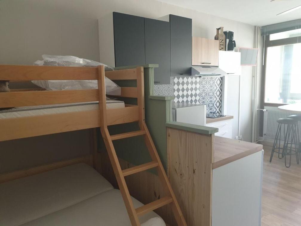 Studio - Vue sur Montagne. Guests can make meals in the kitchenette that features a stovetop, a refrigerator, kitchenware and a microwave. The studio features a washing machine, a tea and coffee maker, a balcony with mountain views as well as a private bathroom boasting a walk-in shower. The unit has 3 beds.