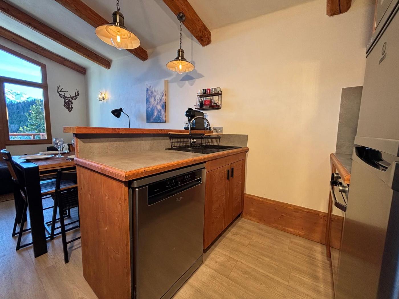 Appartement en Duplex. The fully equipped kitchenette features a stovetop, a refrigerator, a dishwasher and an oven. Featuring a balcony with mountain views, this apartment also provides a coffee machine and a flat-screen TV. The unit offers 6 beds.
