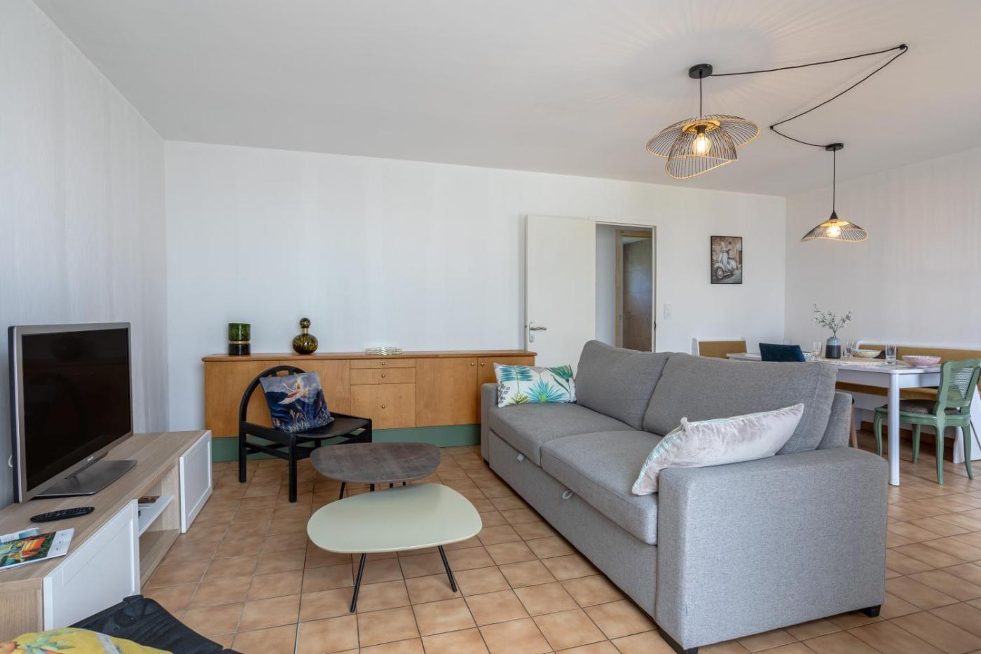 Maison 2 Chambres. This holiday home consists of 1 living room, 2 separate bedrooms and 1 bathroom with a shower and a hairdryer. The fully equipped kitchen has a dishwasher, kitchenware, an oven and a microwave. This holiday home features a washing machine, a coffee machine, a TV with satellite channels and garden views. The unit offers 3 beds.