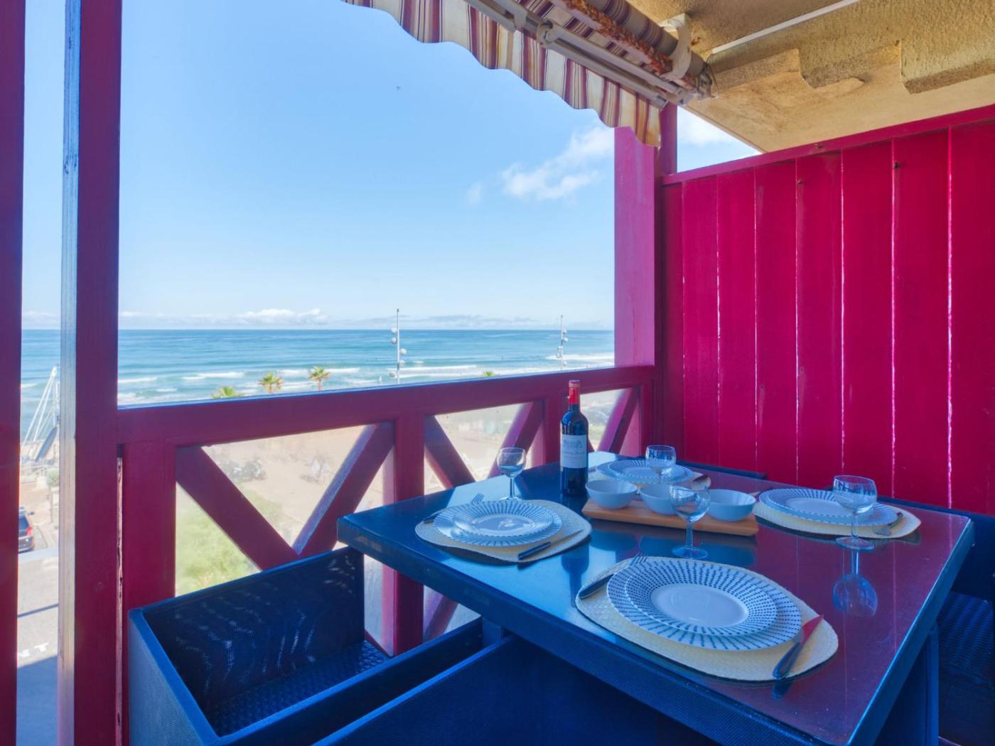 Disposant d’une terrasse et offrant une vue sur la mer, cet appartement possède 1 chambre, un salon, une télévision, une cuisine équipée avec un réfrigérateur et un lave-vaisselle, ainsi que 1 salle de bains avec une douche.