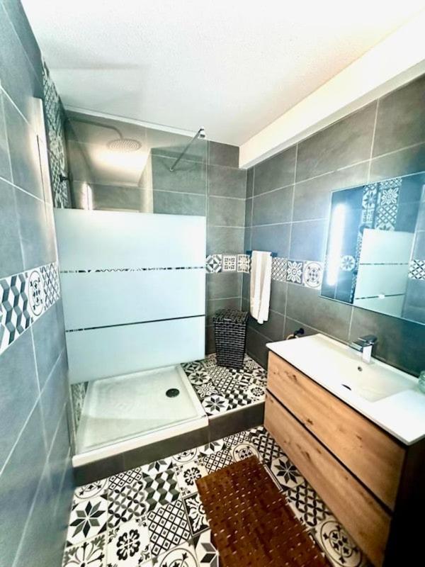 Appartement 1 Chambre. Boasting a private entrance, this air-conditioned apartment features 1 living room, 1 separate bedroom and 1 bathroom with a bath or a shower and a hairdryer. Guests can make meals in the kitchen that has a stovetop, a refrigerator, a dishwasher and kitchenware. Featuring a terrace with sea views, this apartment also features a washing machine and a flat-screen TV. The unit has 2 beds.