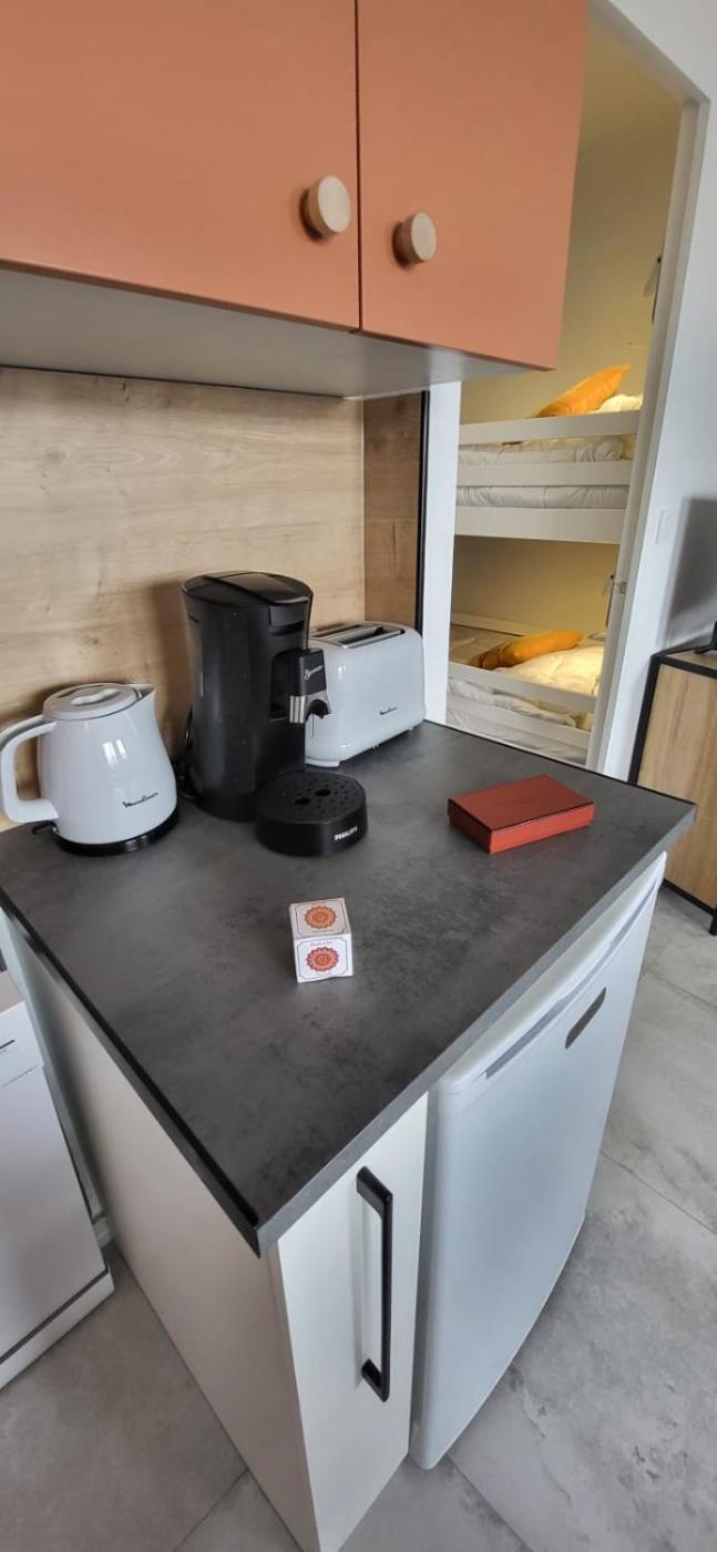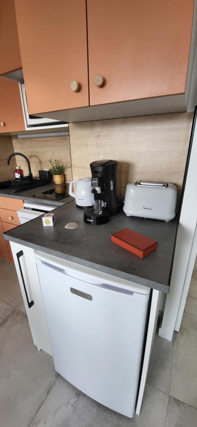 Studio. The well-fitted kitchen has a refrigerator, a dishwasher, kitchenware and a microwave. The studio features air conditioning, a coffee machine, a balcony with sea views as well as a private bathroom boasting a shower. The unit has 2 beds.