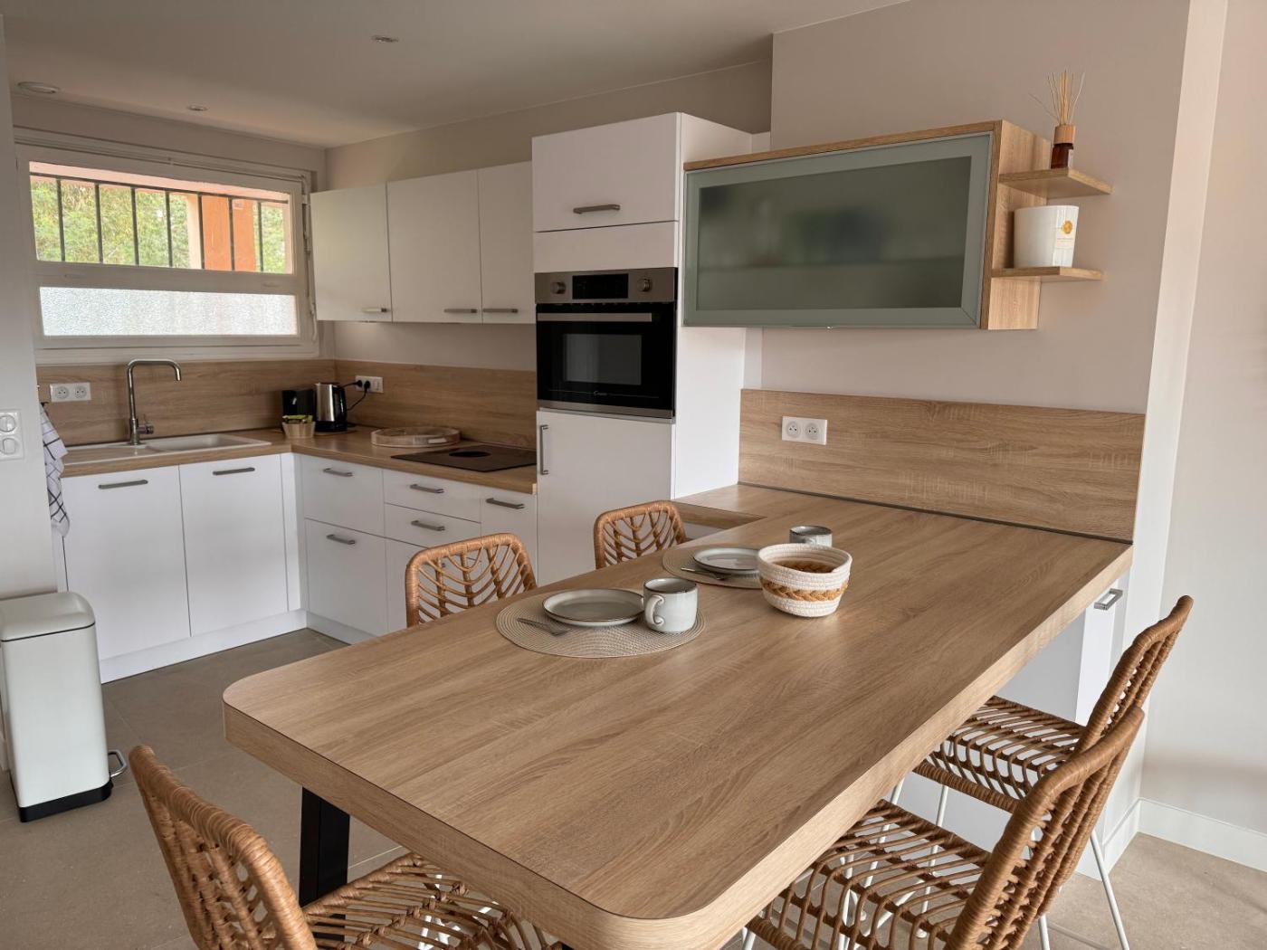 Appartement 1 Chambre. The well-fitted kitchen features a stovetop, a refrigerator, a dishwasher and kitchenware. The air-conditioned apartment offers a flat-screen TV, a washing machine, a tea and coffee maker, a seating area as well as sea views. The unit offers 2 beds.