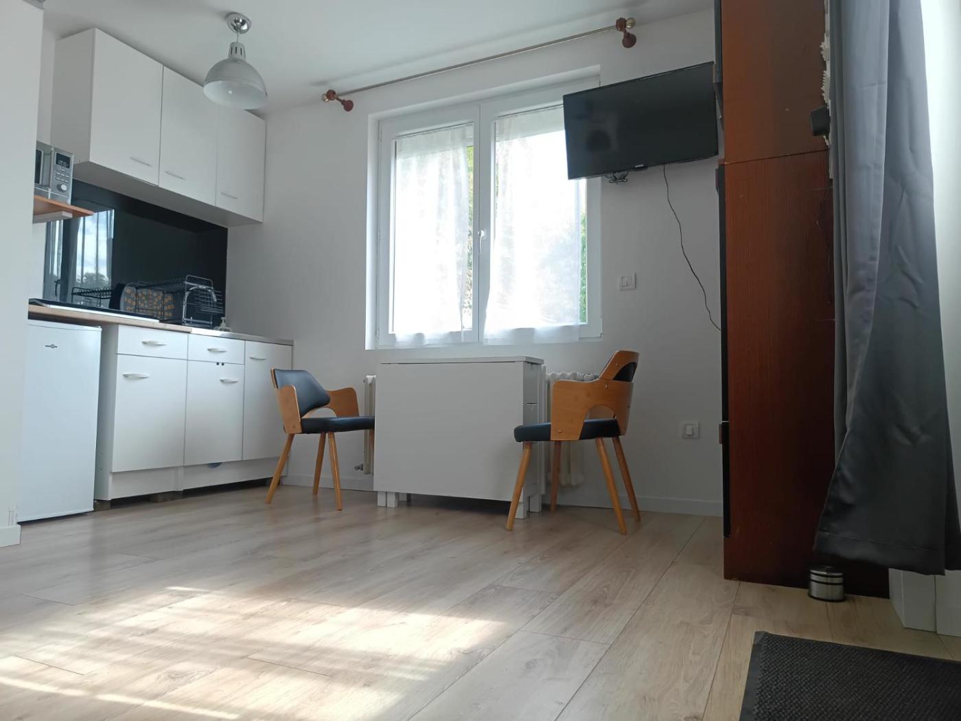 Studio avec Canapé-Lit. The studio provides a wardrobe, a sofa, as well as a private bathroom boasting a shower. The well-equipped kitchenette has a stovetop, a refrigerator, kitchenware and an oven. The studio features a private entrance, a coffee machine, a dining area, a flat-screen TV, as well as garden views. The unit has 1 bed.