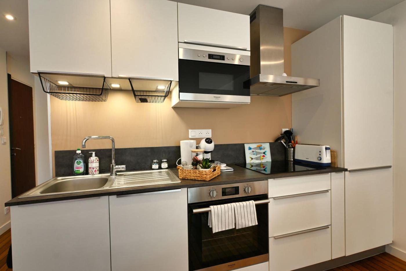 Appartement 2 Chambres. This apartment is comprised of 1 living room, 2 separate bedrooms and 1 bathroom with a shower and a hairdryer. Meals can be prepared in the well-fitted kitchen, which is fitted with a stovetop, a refrigerator, a dishwasher and kitchenware. The apartment offers a flat-screen TV, a washing machine, soundproof walls, a tea and coffee maker as well as garden views. The unit offers 3 beds.