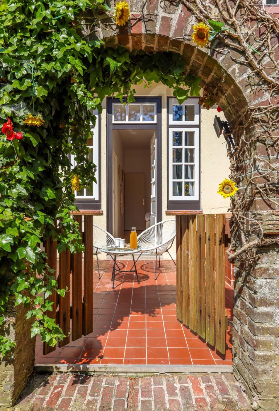 Disposant d’une terrasse et offrant une vue sur le jardin, cet appartement possède 1 chambre, un salon, une télévision à écran plat, une cuisine équipée avec un réfrigérateur et un lave-vaisselle, ainsi que 1 salle de bains avec une baignoire ou une douche. Cet hébergement met à votre disposition des serviettes et du linge de lit.