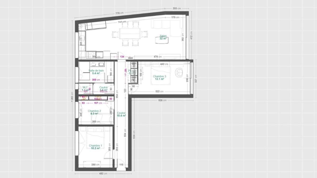 Appartement 3 Chambres. This spacious apartment is comprised of 1 living room, 3 separate bedrooms and 1 bathroom with a shower and a hairdryer. The well-fitted kitchen features a refrigerator, a dishwasher, kitchenware and a microwave. The apartment offers a flat-screen TV, a washing machine, soundproof walls, a coffee machine as well as sea views. The unit offers 3 beds.